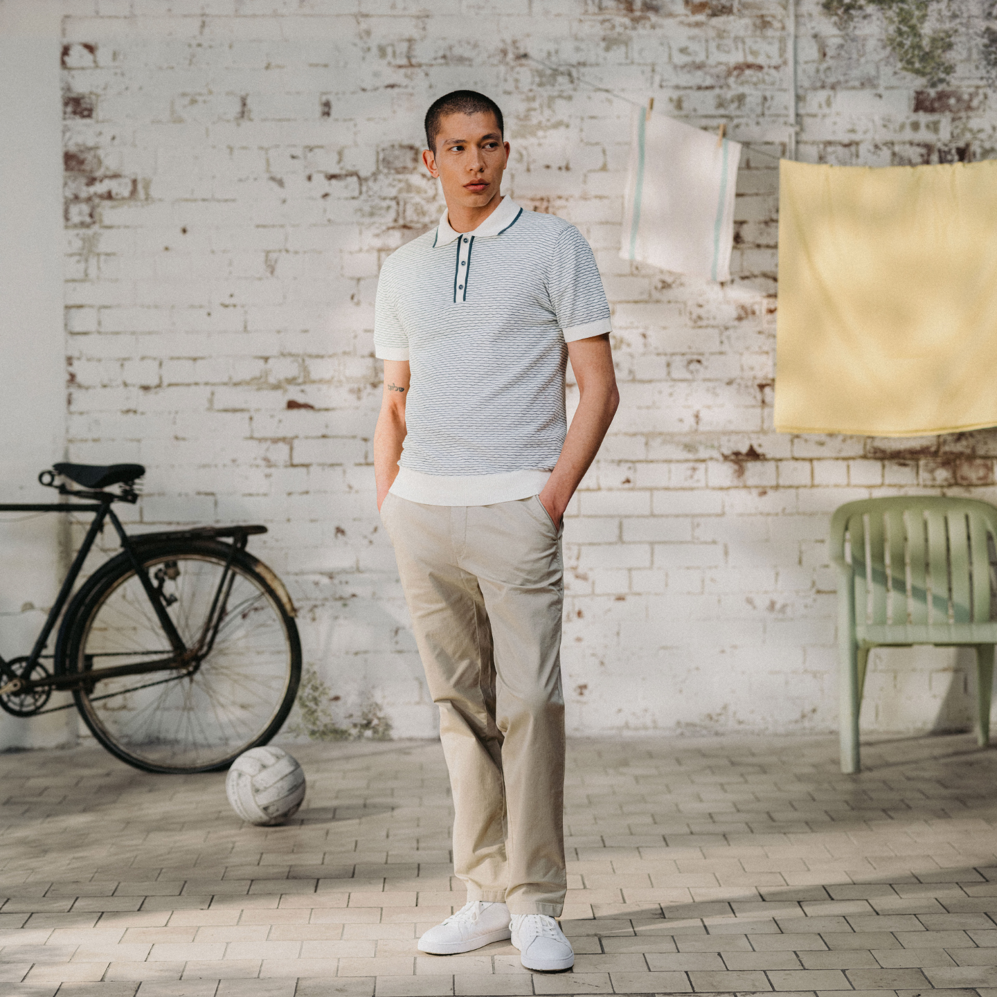 Cable Patterned Cotton Polo Shirt