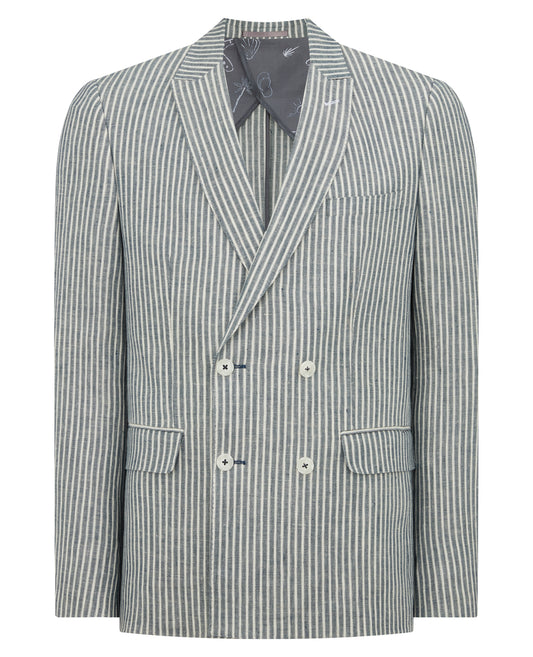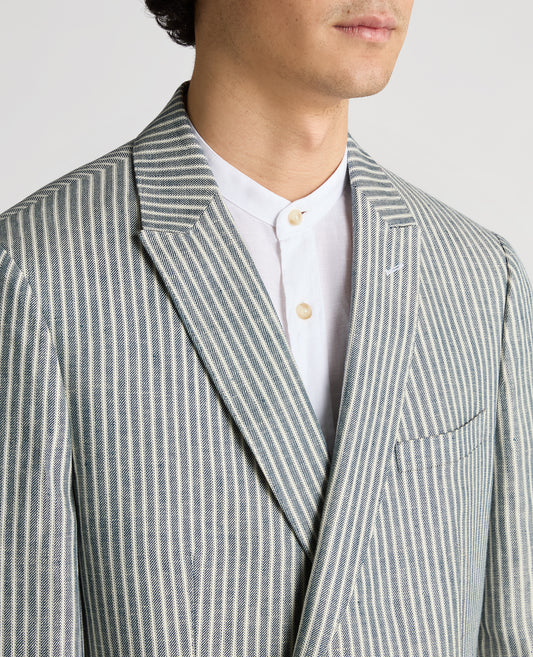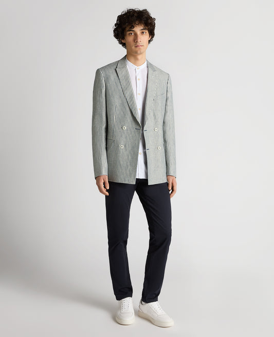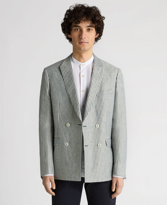 Slim Fit Linen-Blend Double-Breasted Pinstripe JacketSaleSlim Fit Linen-Blend Double-Breasted Pinstripe JacketSlim Fit Linen-Blend Double-Breasted Pinstripe JacketSale