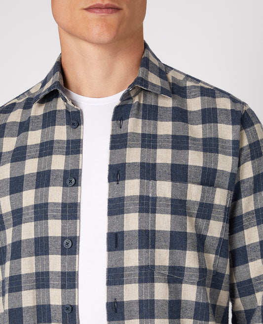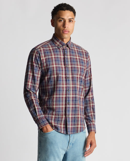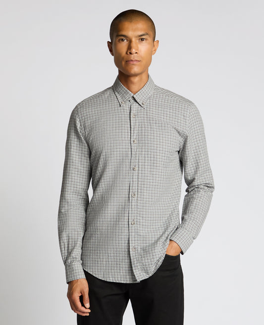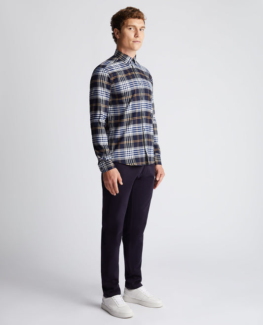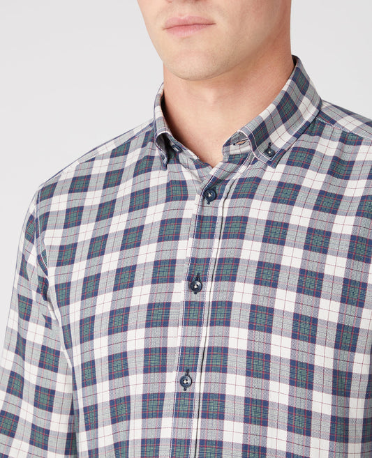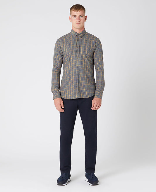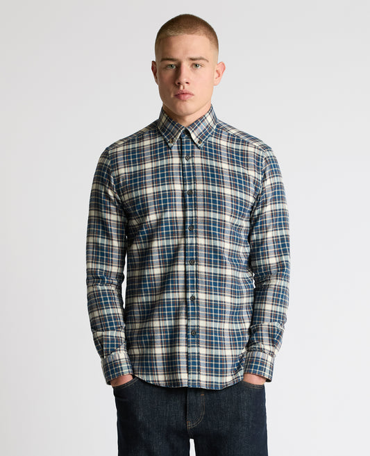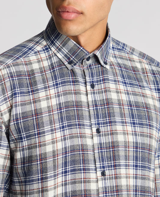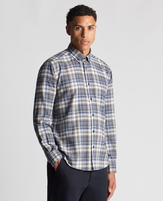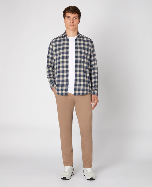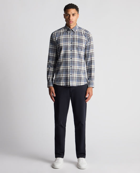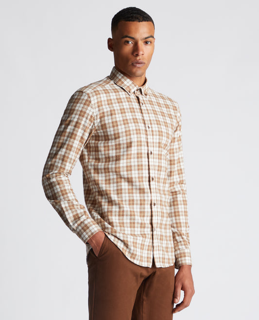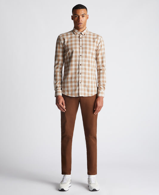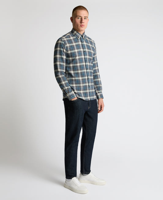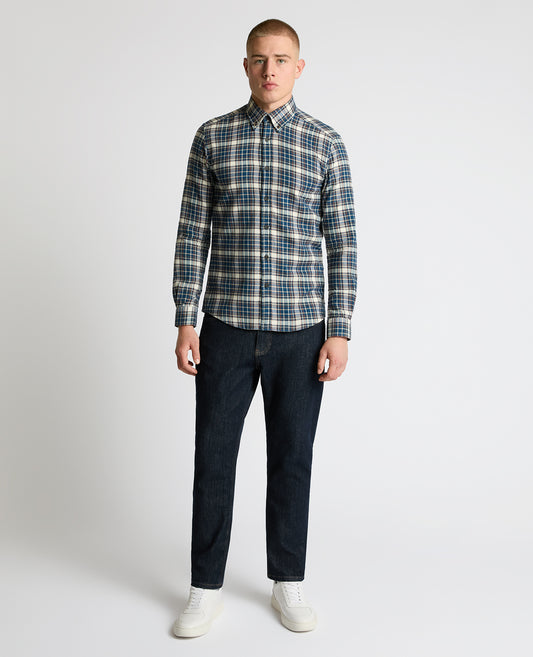 Tapered Fit Checked Brushed Cotton Shirt
