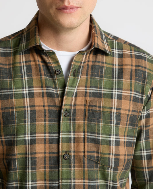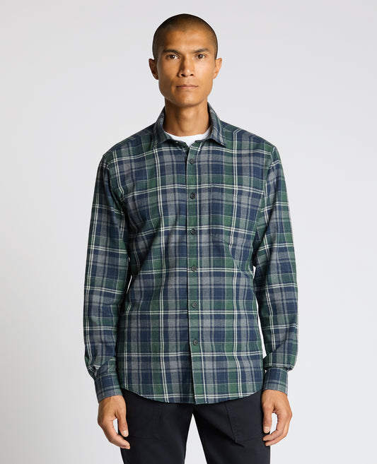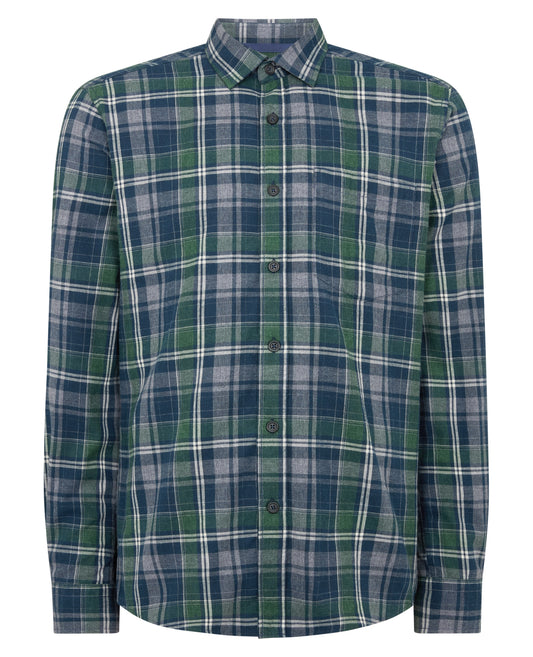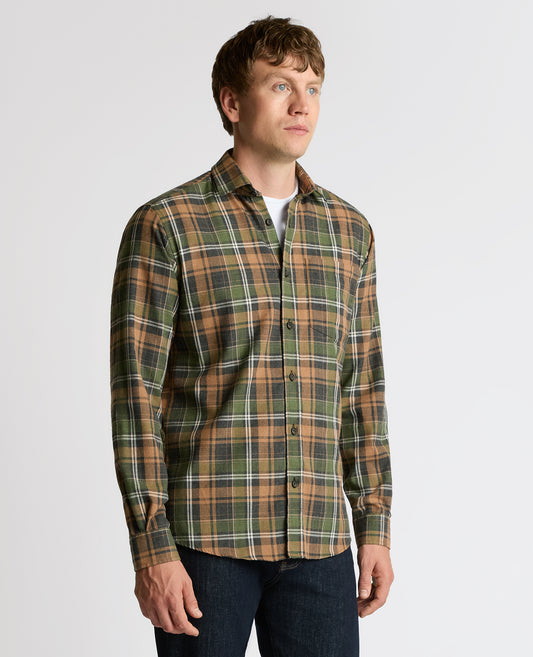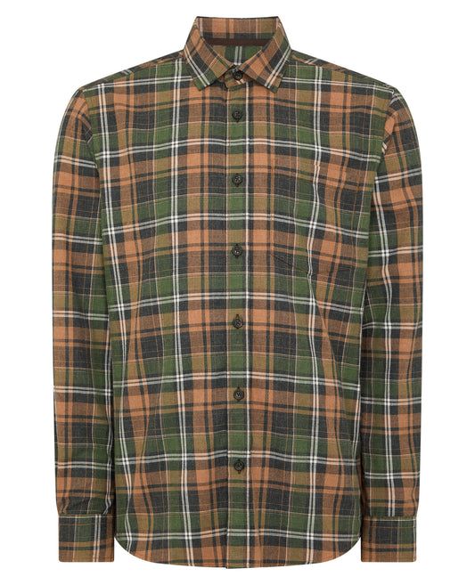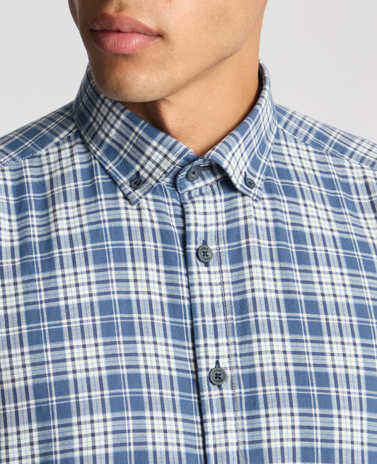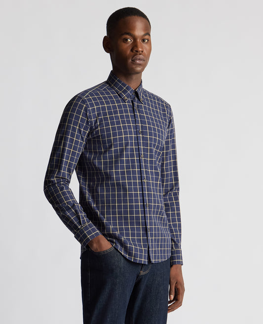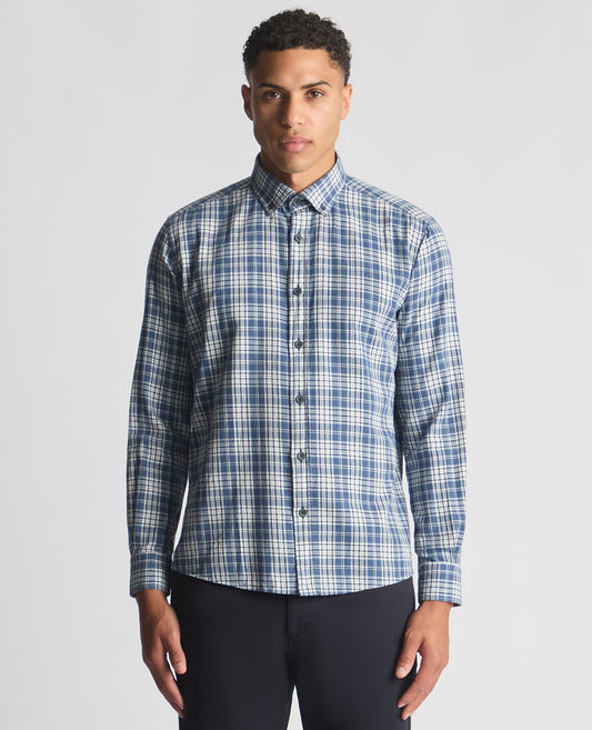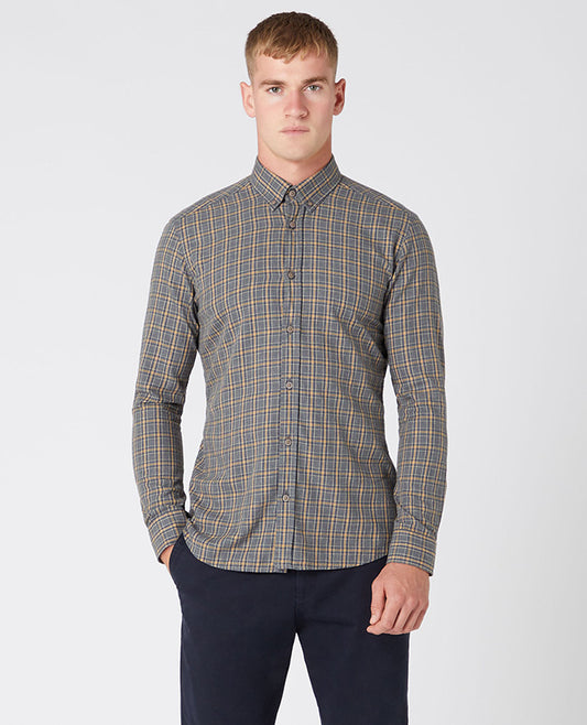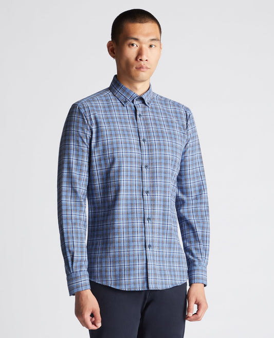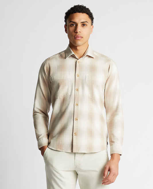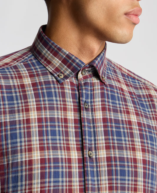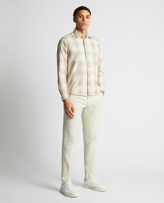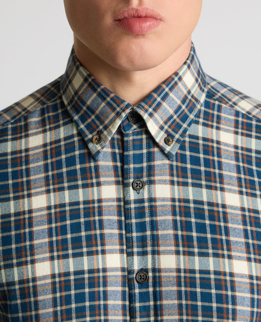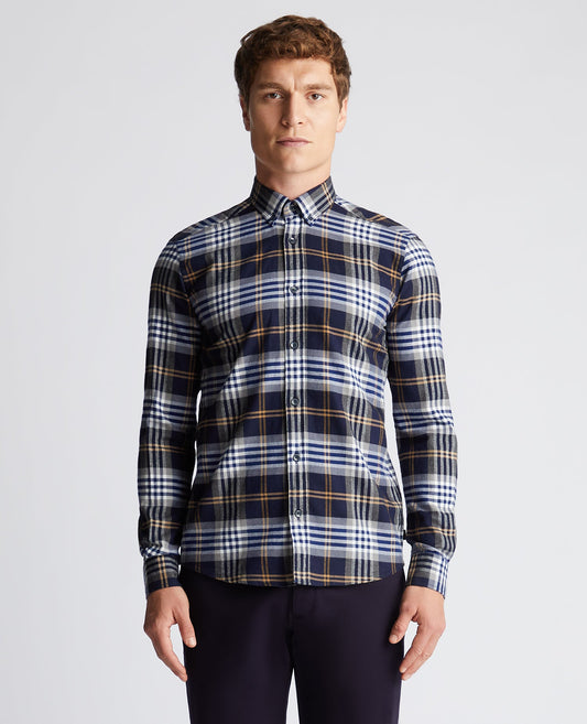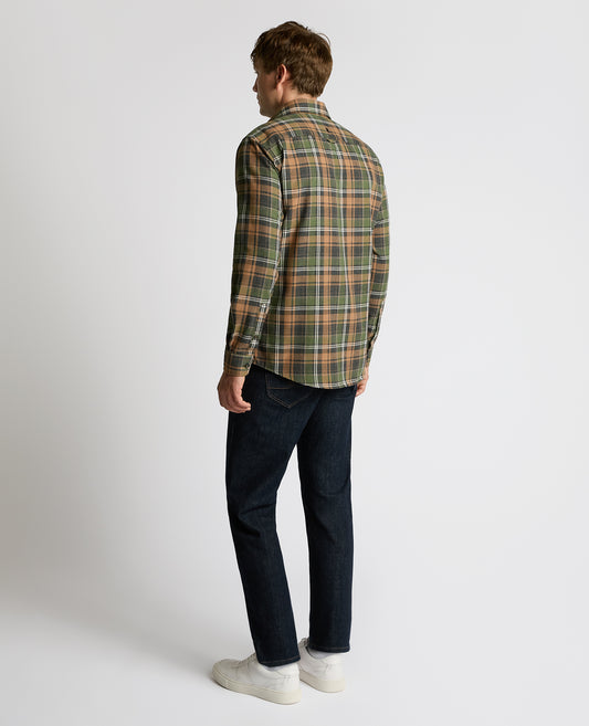 Tapered Fit Checked Brushed Cotton Shirt