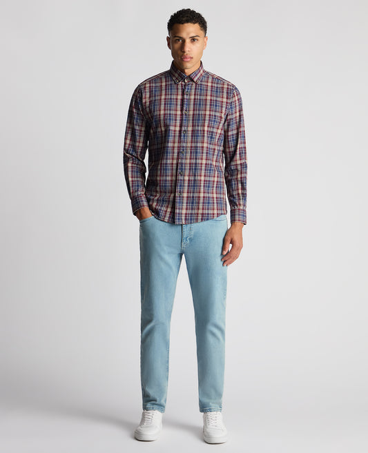 Tapered Fit Long Sleeve Checked Shirt
