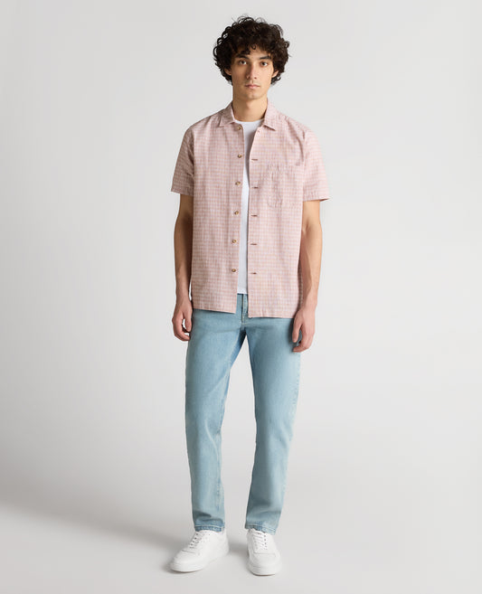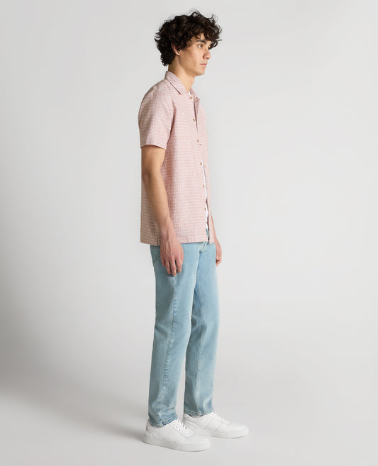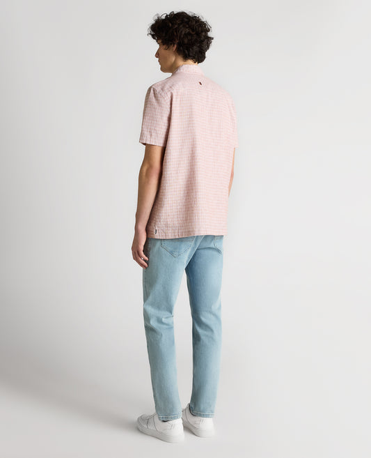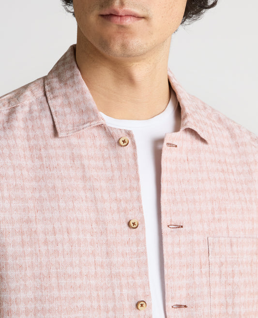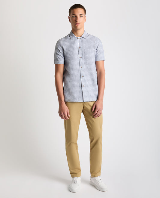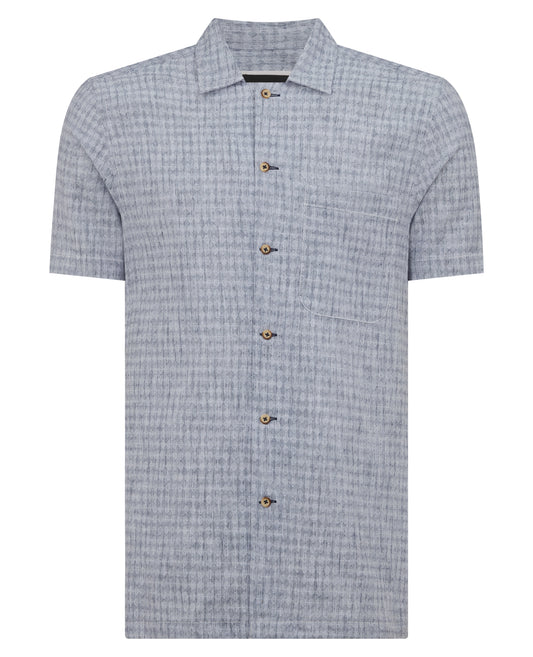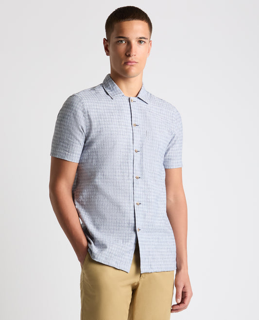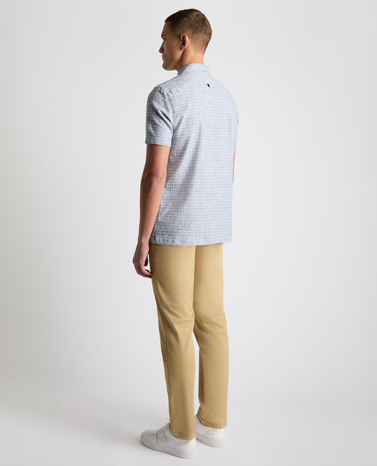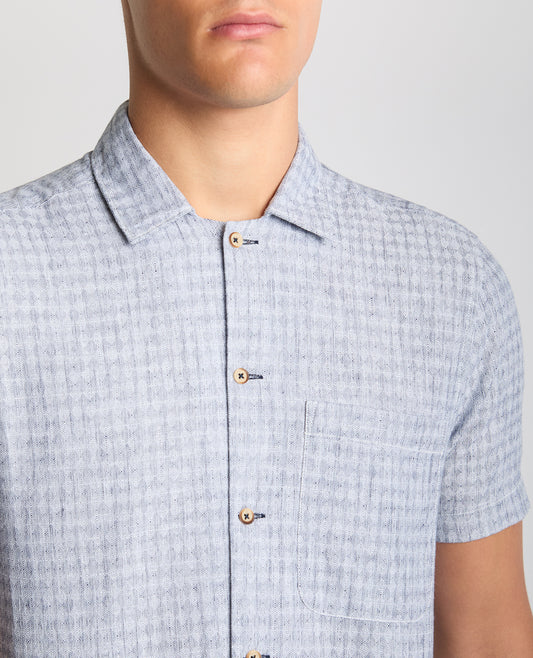 Tapered Fit Cotton-Linen Short Sleeve Shirt