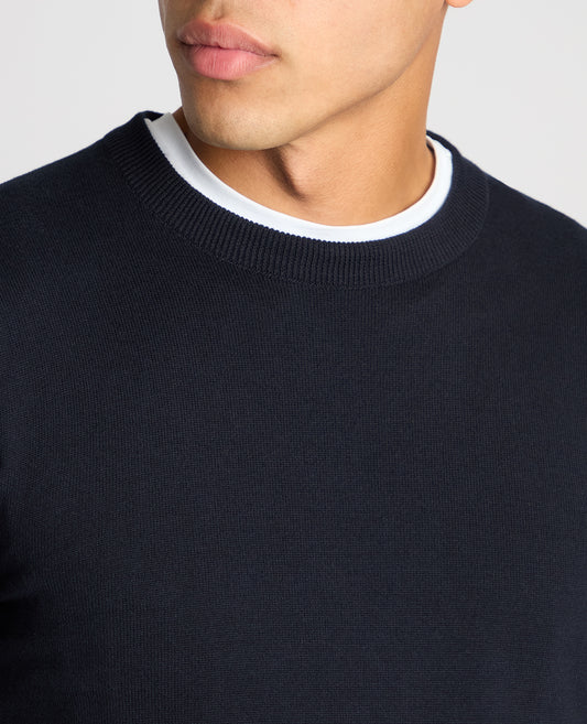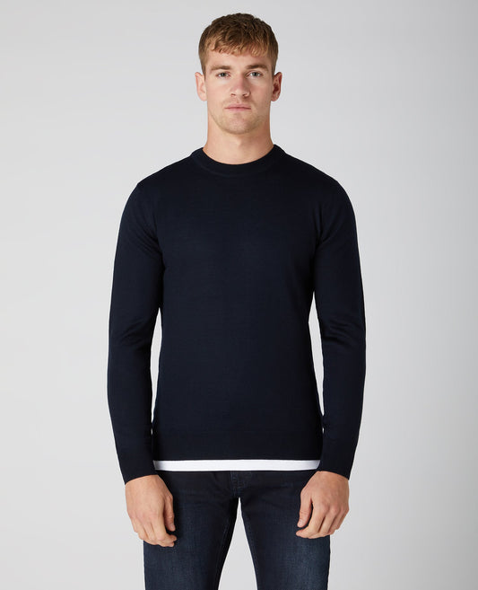 Tapered Fit Merino Wool-Blend Crew Neck Sweater