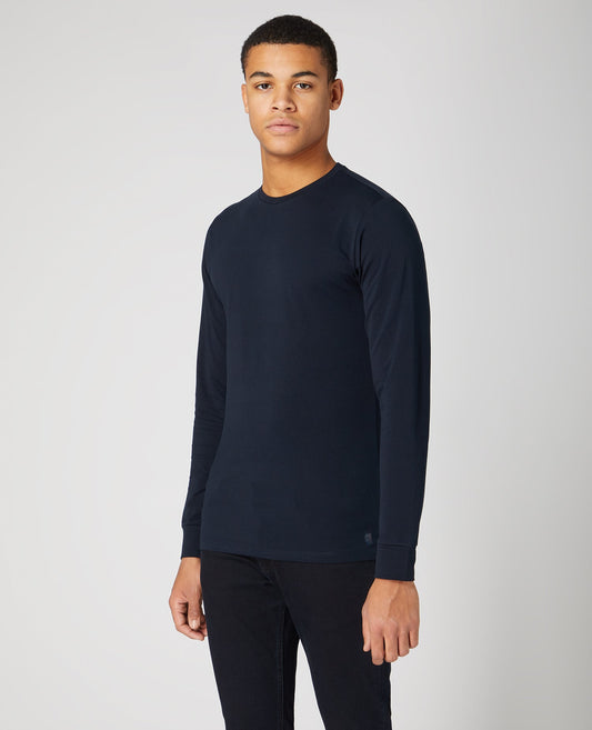 Tapered Fit Cotton-Stretch Long Sleeve T-Shirt