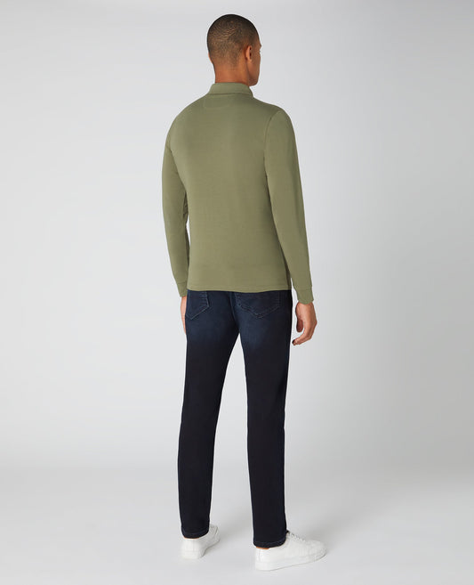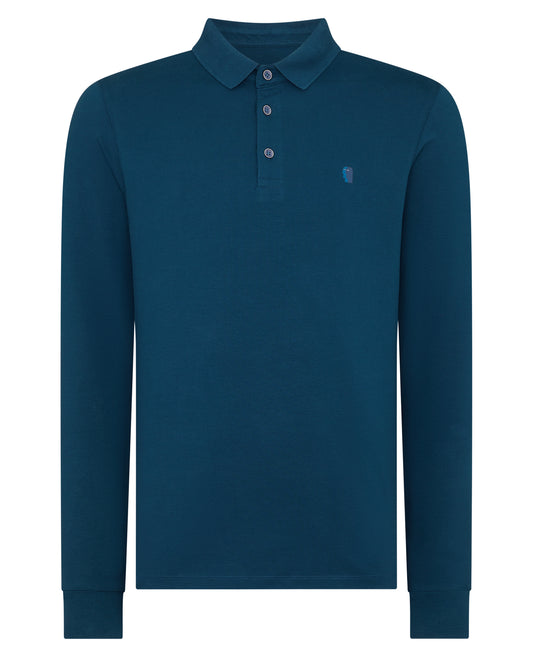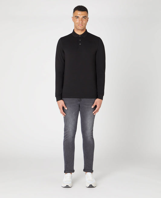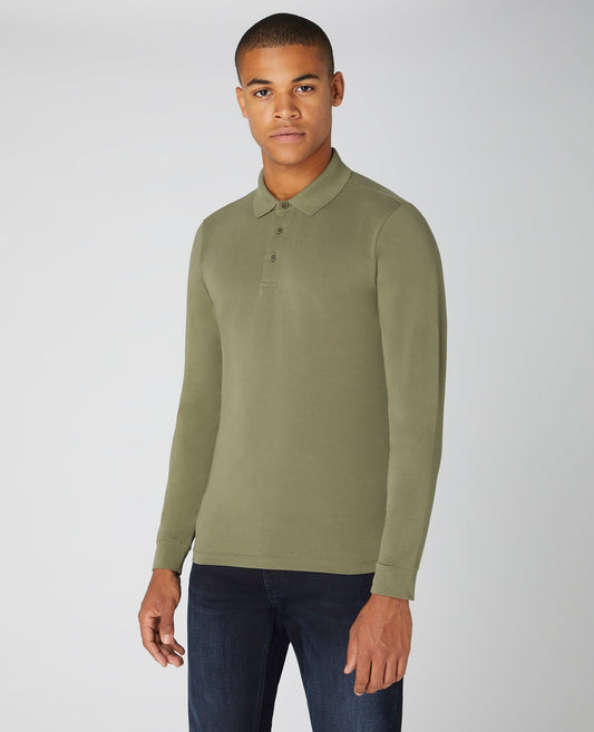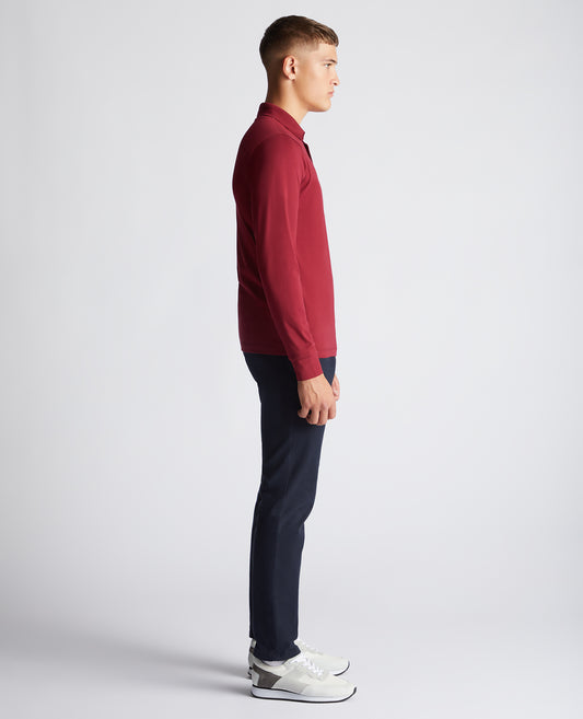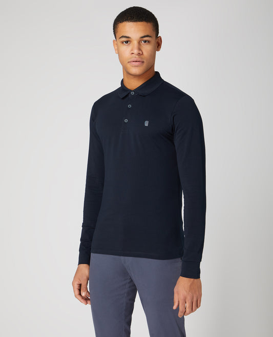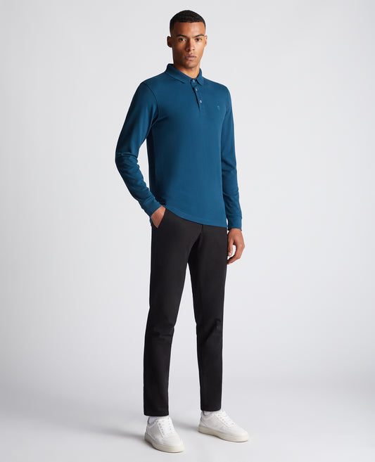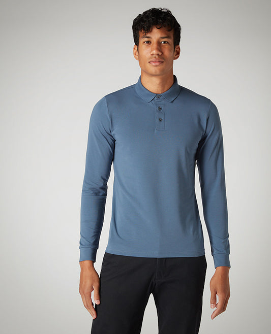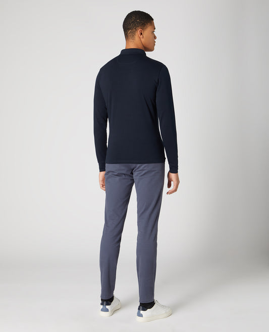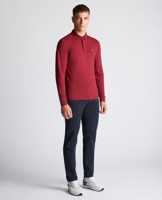 Tapered Fit Cotton-Stretch Long-sleeve Polo Shirt
