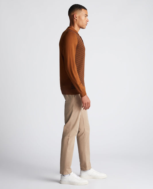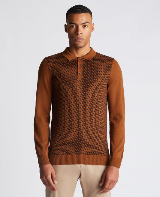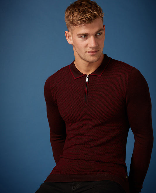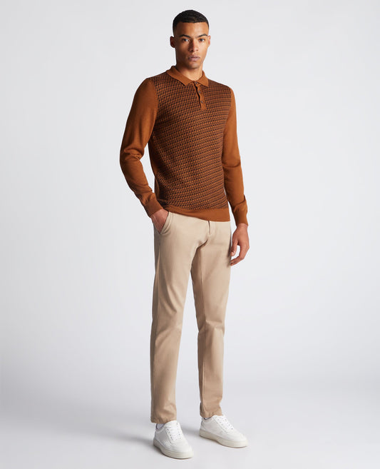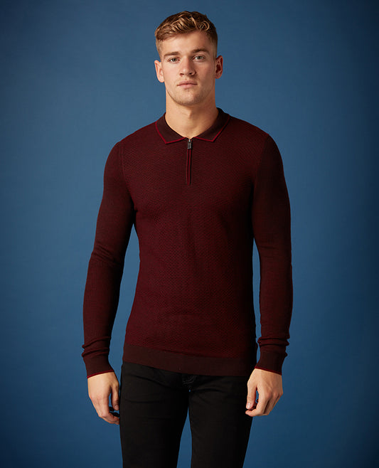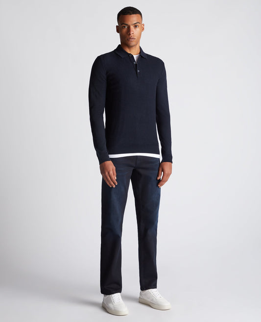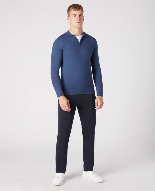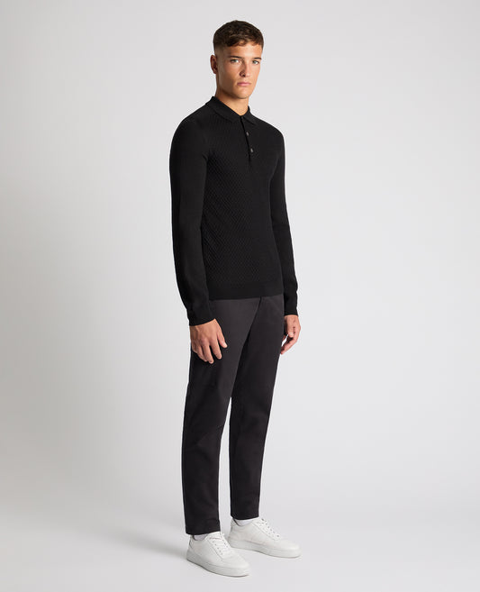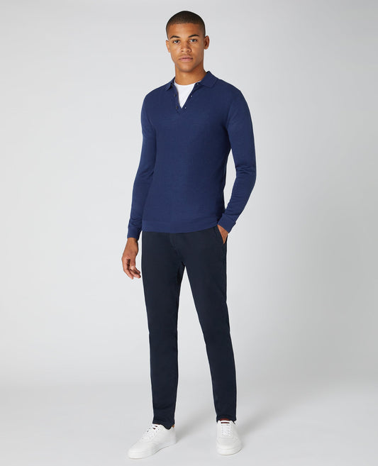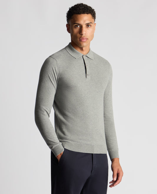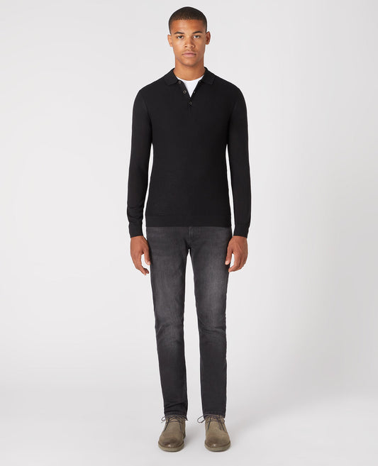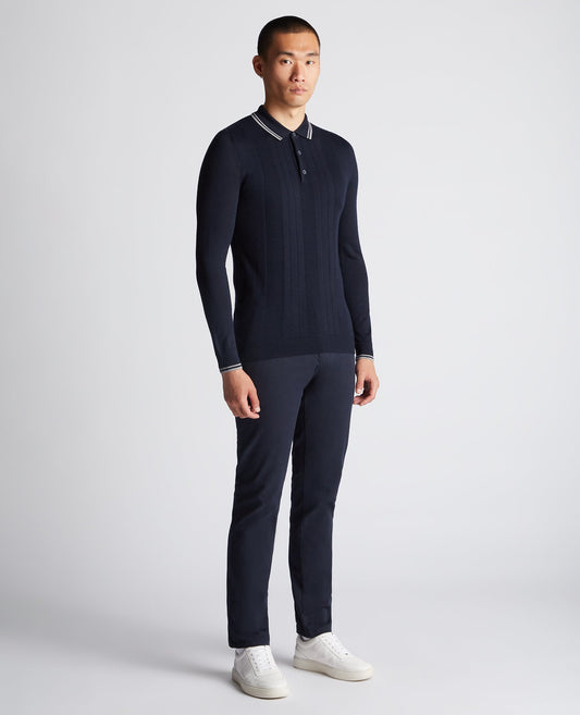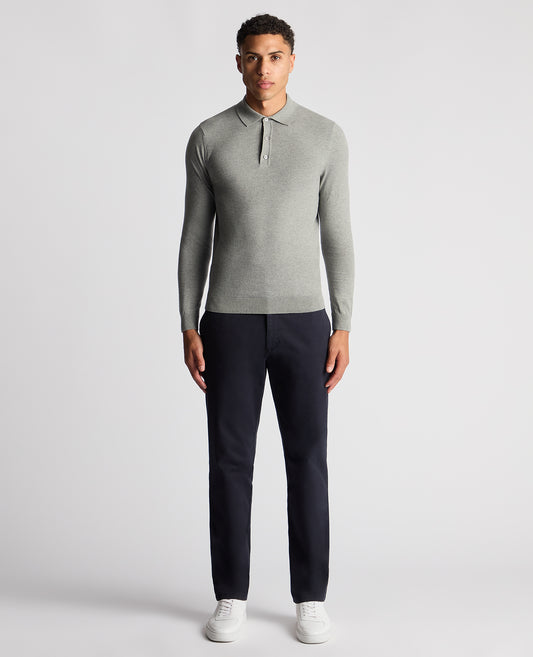 Slim Fit Cotton Long Sleeve Knitted Polo