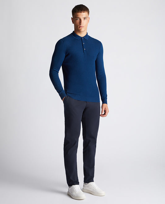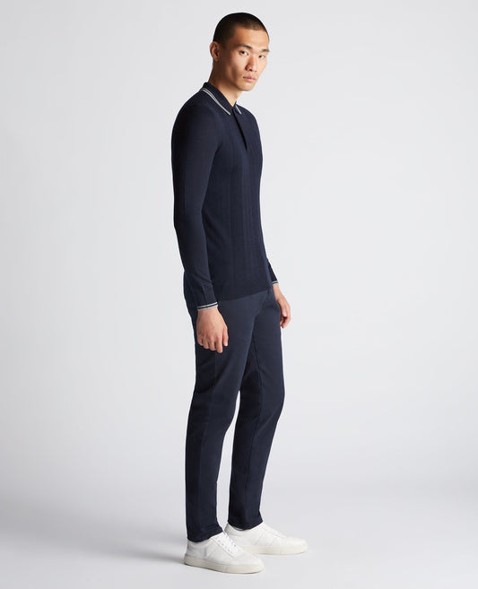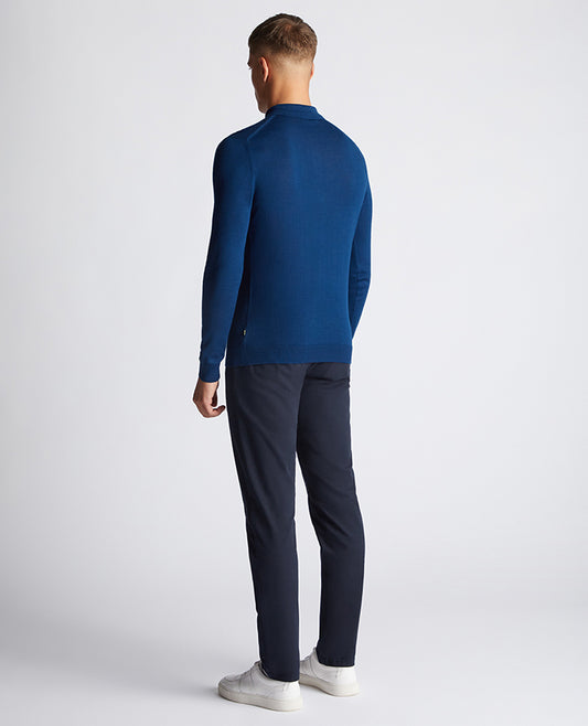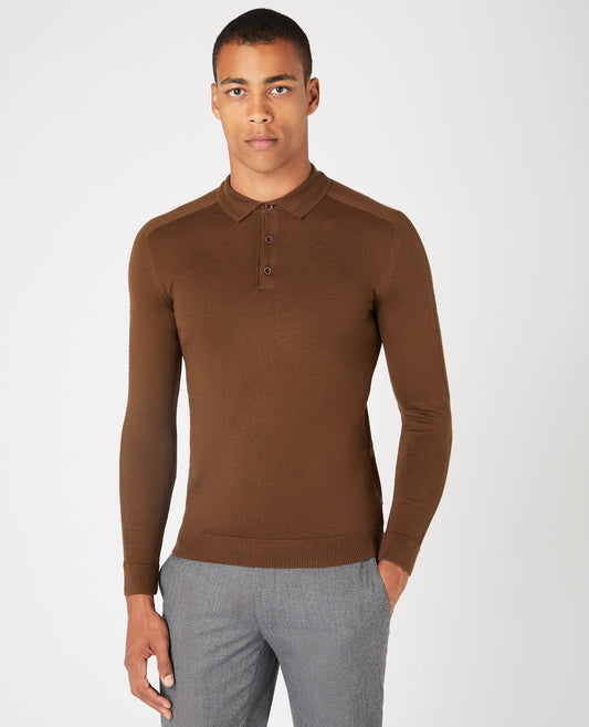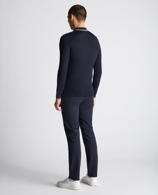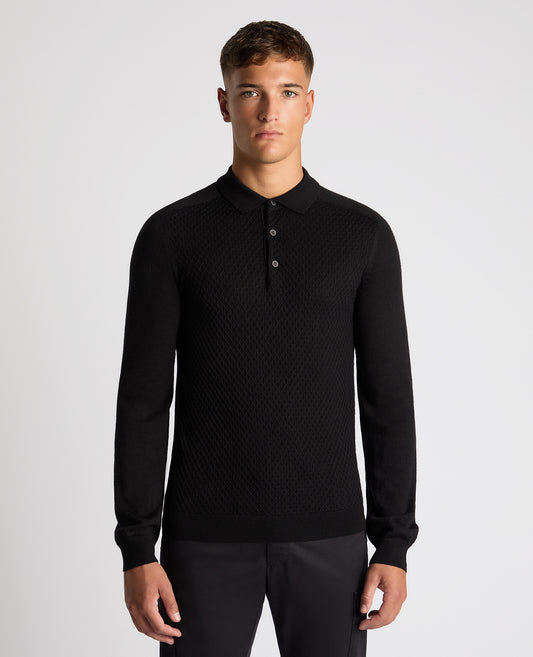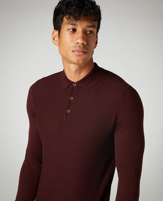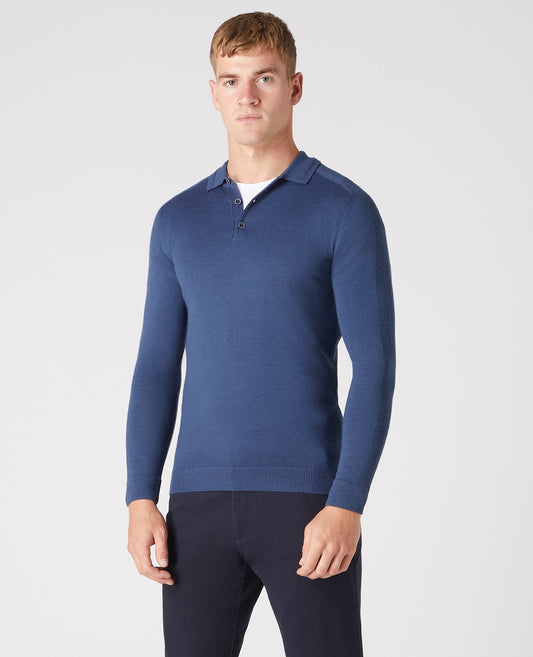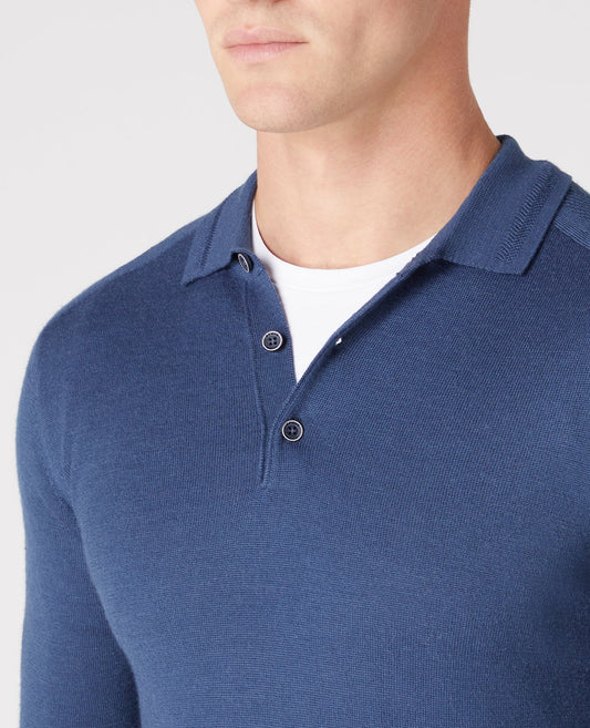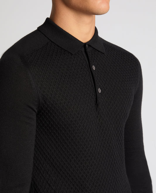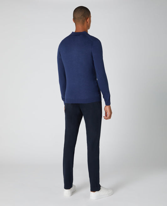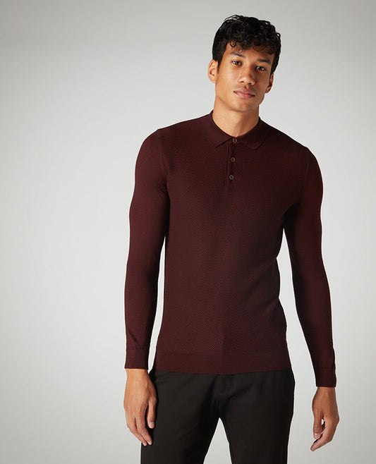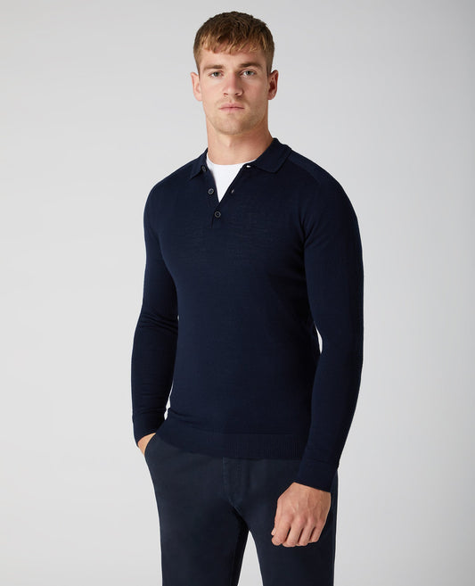 Slim Fit Merino Wool-Blend Long Sleeve Knitted Polo