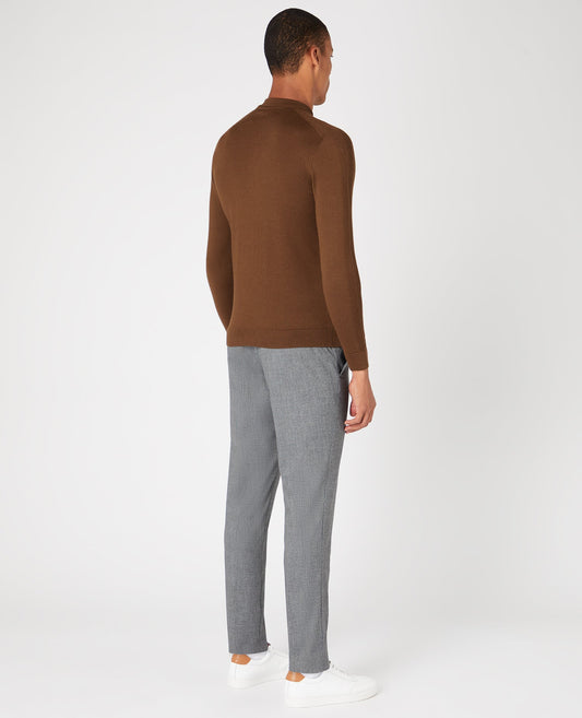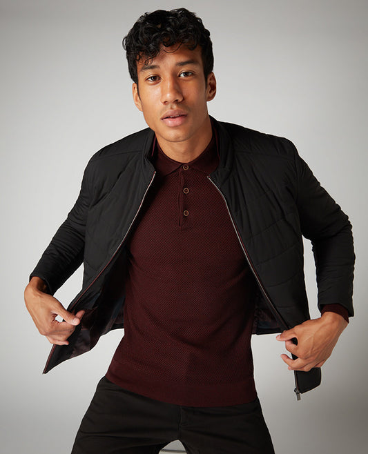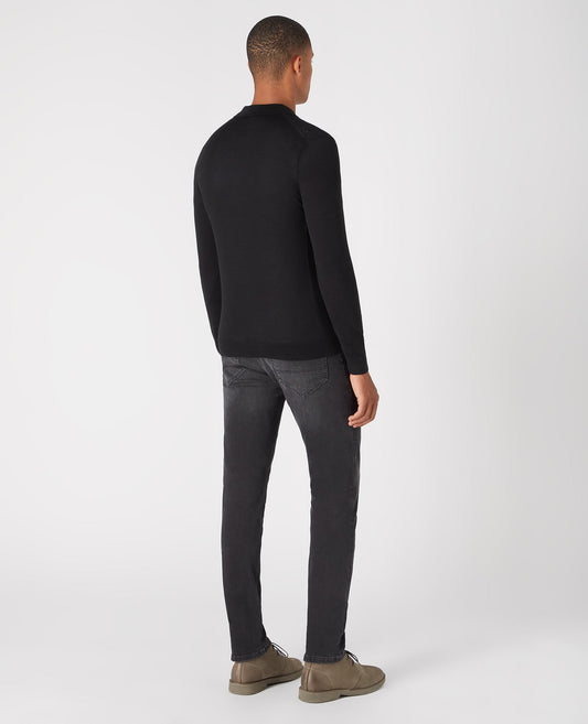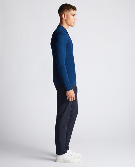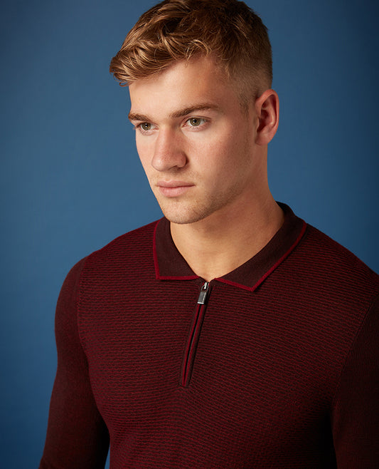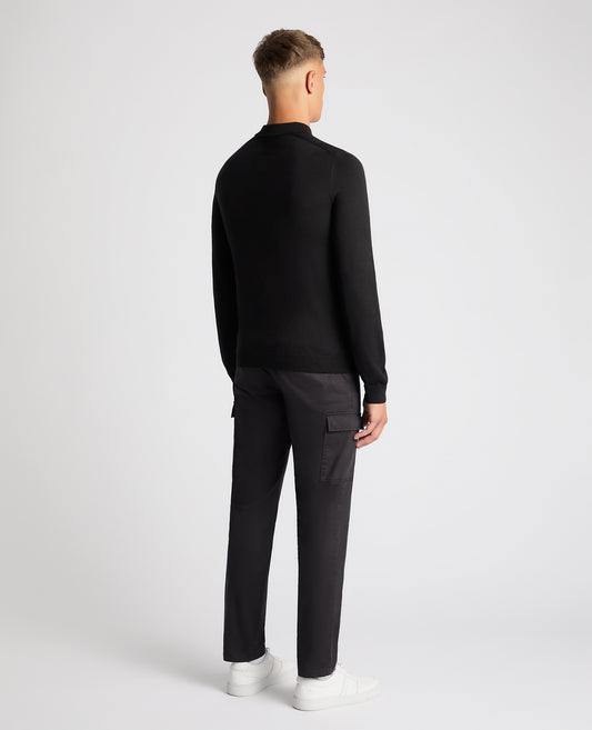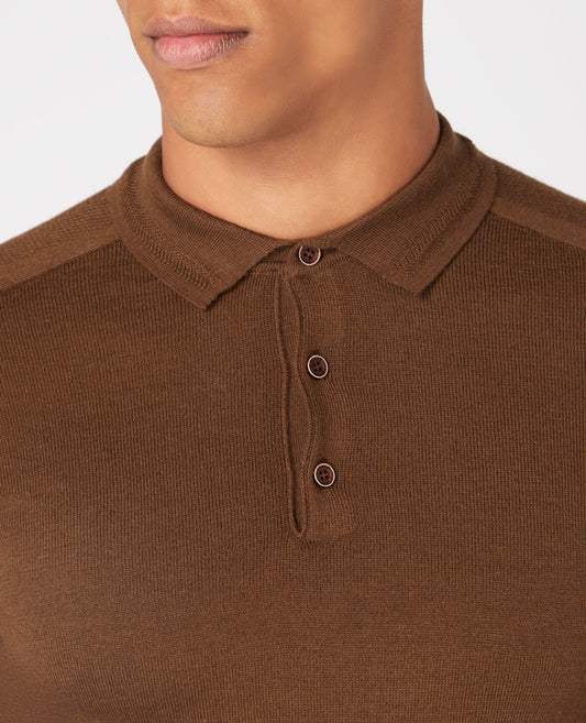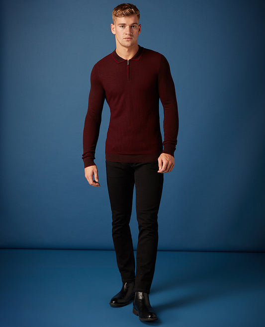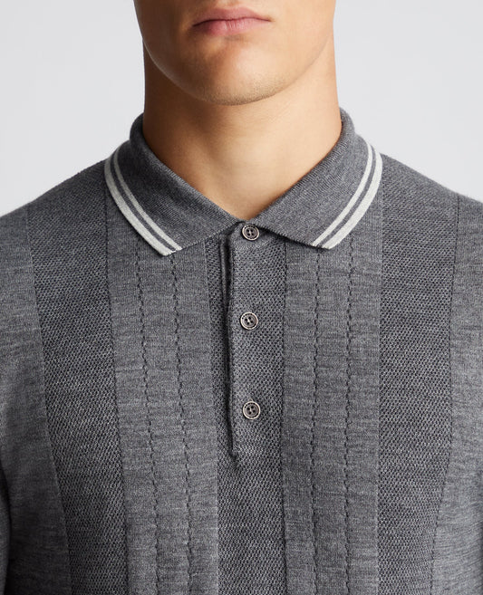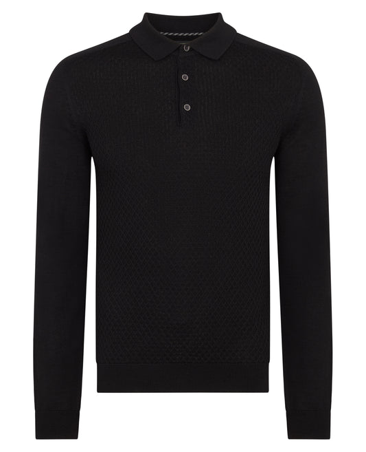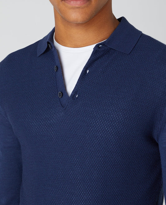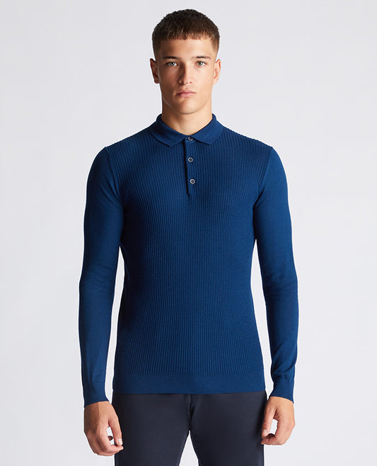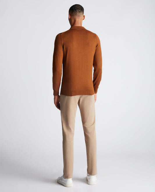 Slim Fit Merino Wool-Blend Long Sleeve Knitted Polo