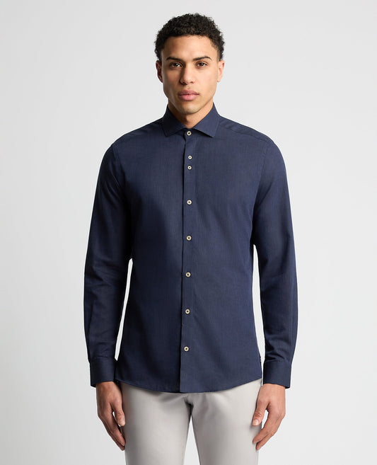 Tapered Fit Cotton-Linen Blend Shirt