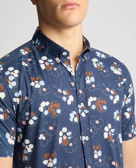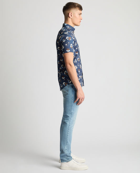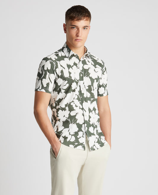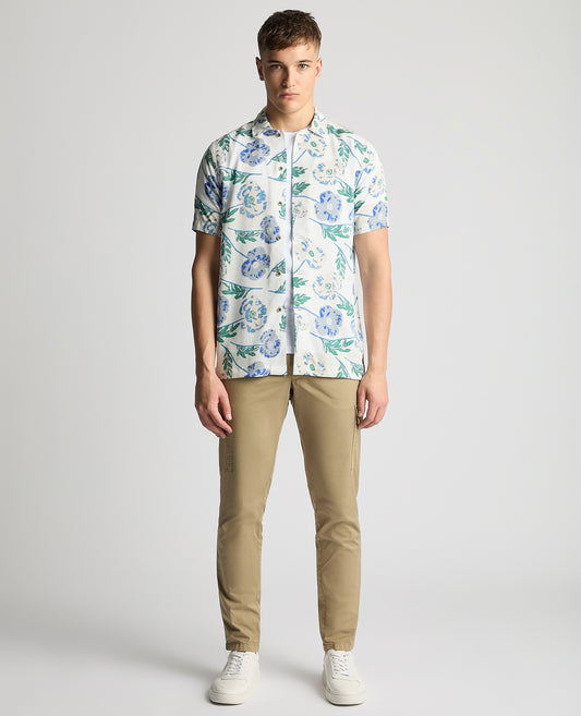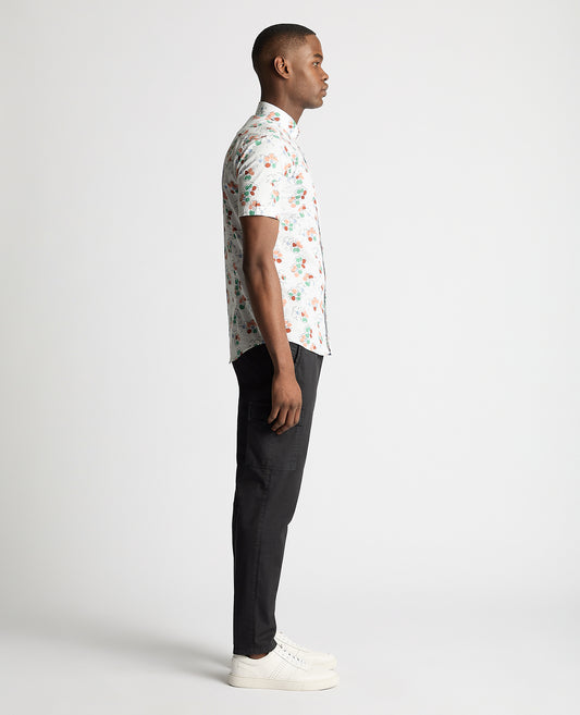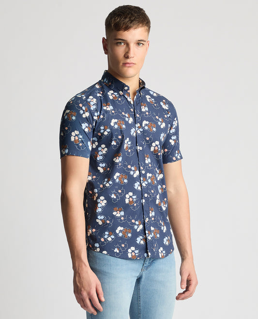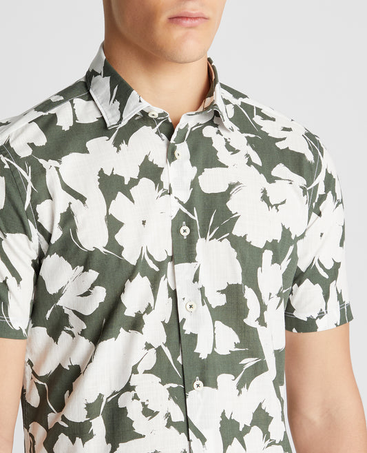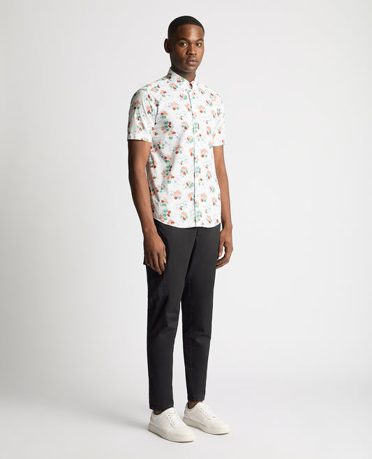 Tapered Fit Cotton Short Sleeve Floral Shirt
