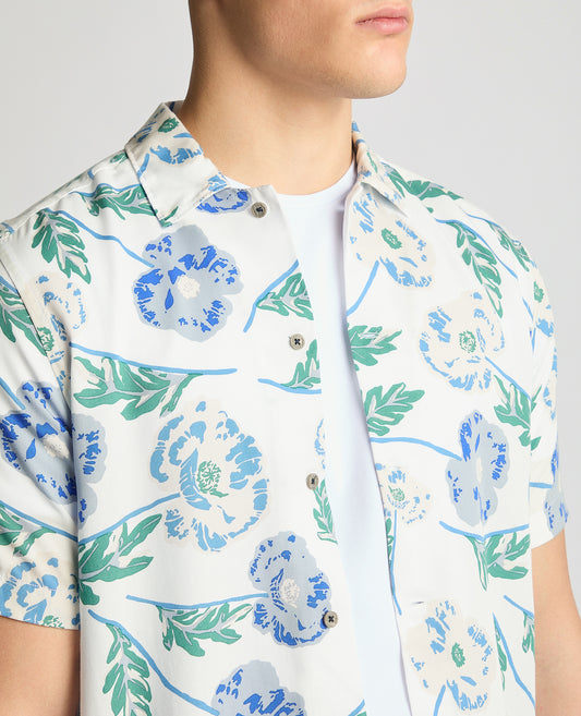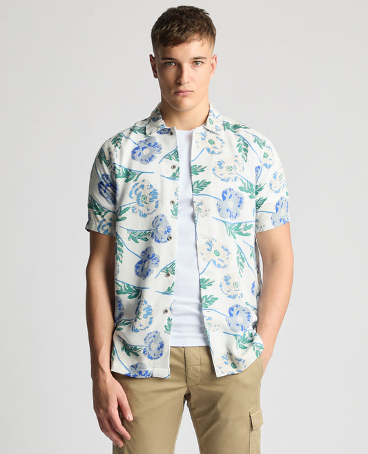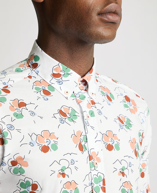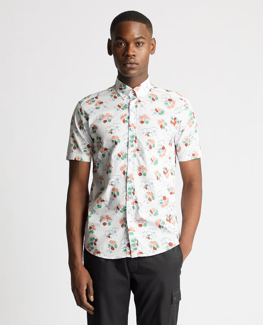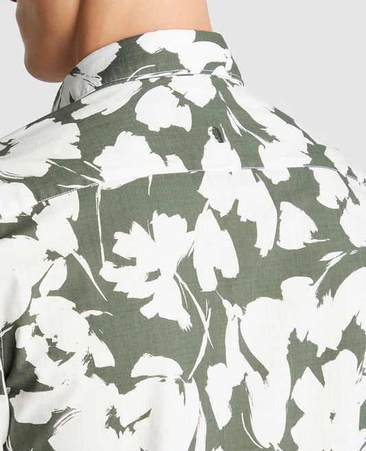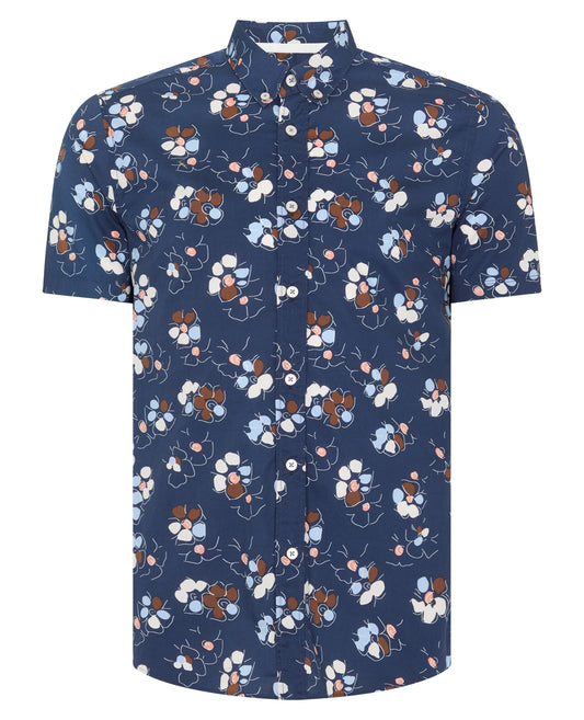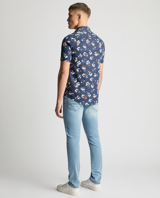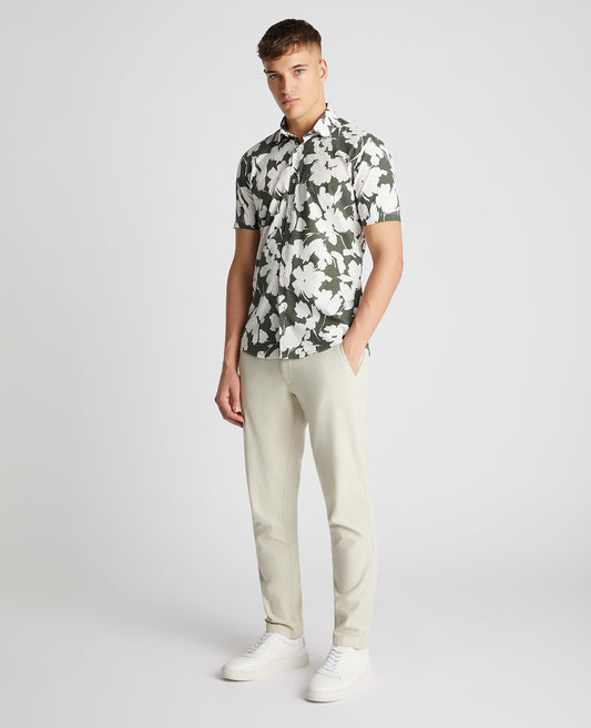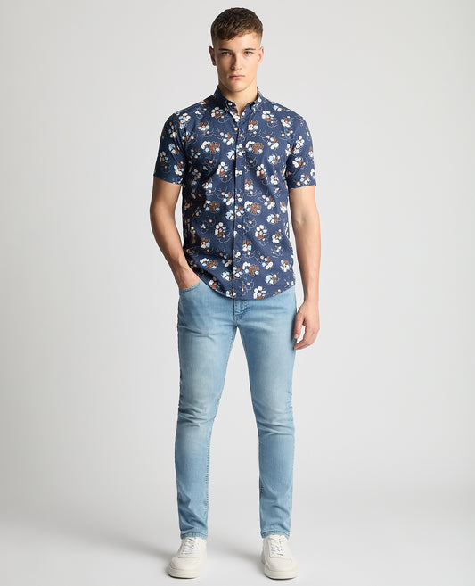 Tapered Fit Cotton Short Sleeve Floral Shirt