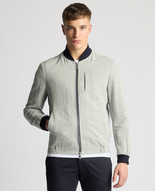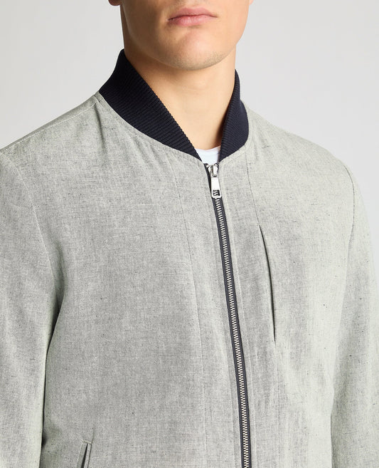 Regular Fit Linen Blend Bomber Jacket