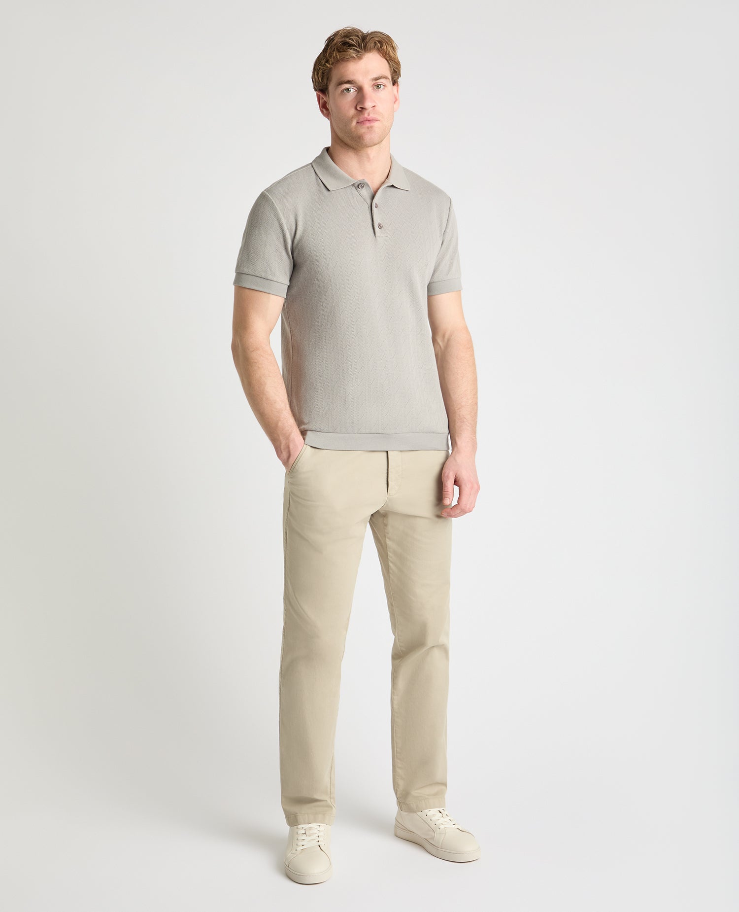 Some pieces don t need to shout to be noticed. This polo leans into texture and restraint, using a classic cable-knit pattern to bring depth and character in a way that feels timeless rather than trend-led. Wear it with tailored trousers or smart shorts for days that call for something a little more composed.