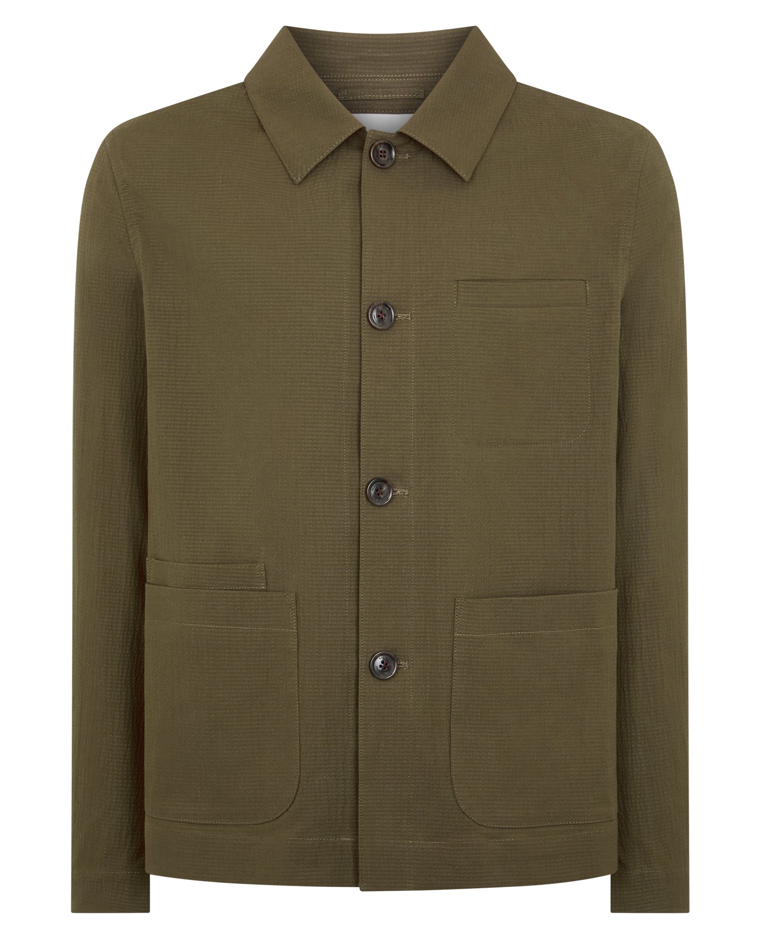A lighter take on a workwear staple, built for warmer days and busy schedules. This jacket is cut from a cotton-stretch fabric with a seersucker texture that sits slightly away from the skin, helping keep things comfortable when the temperature climbs.