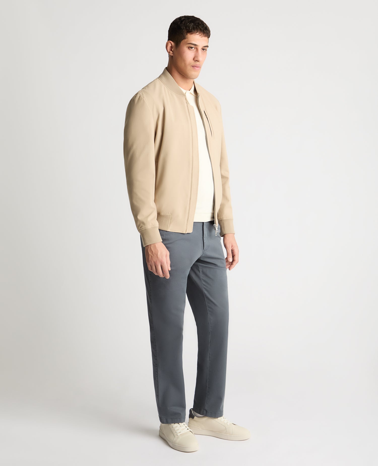 This bomber is all about balance. Clean in look, comfortable in wear, and built to handle days that don t sit still. The two-layer cotton-stretch fabric gives it a nicely weighted feel without adding bulk, making it a solid choice when you want an extra layer that still looks considered.