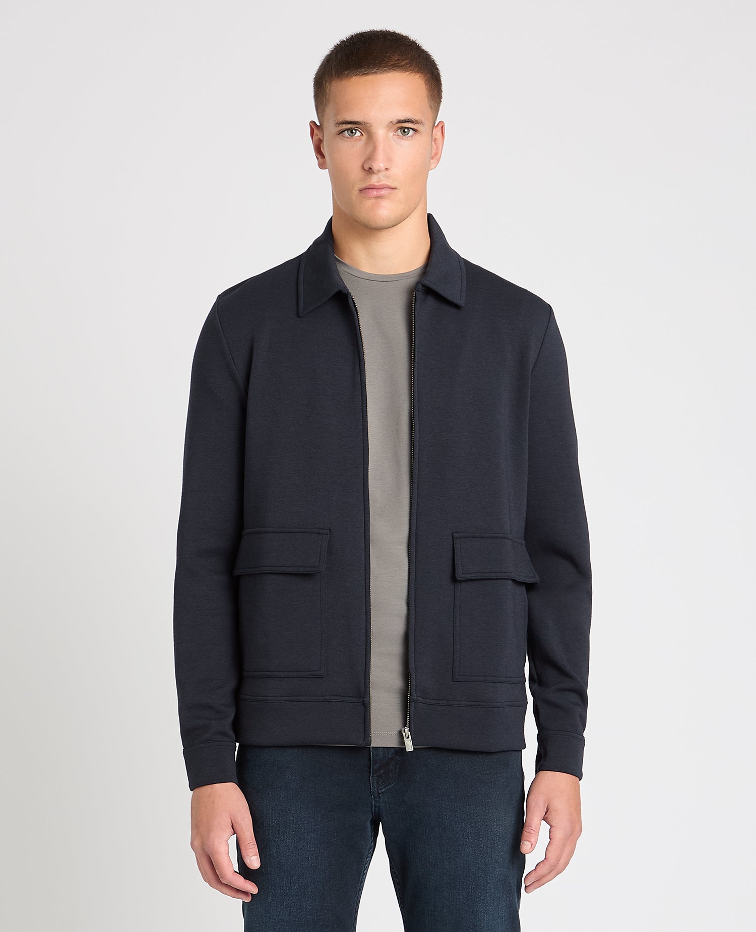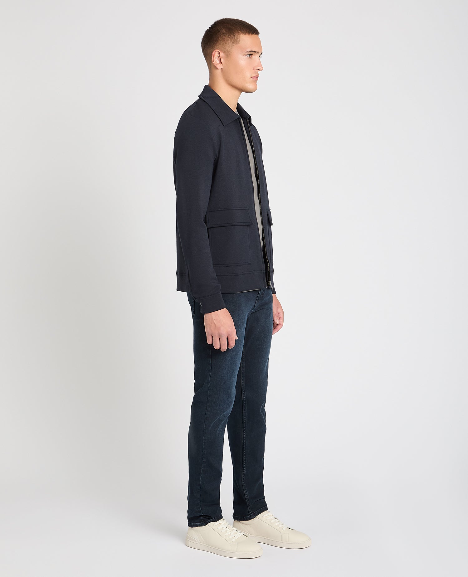 Navy slim fit cotton-stretch long sleeve pique polo with chest embroidary, contrast tipping on the collar and three button closing. If you prefer an easier fit , we recommend sizing up for this garment.