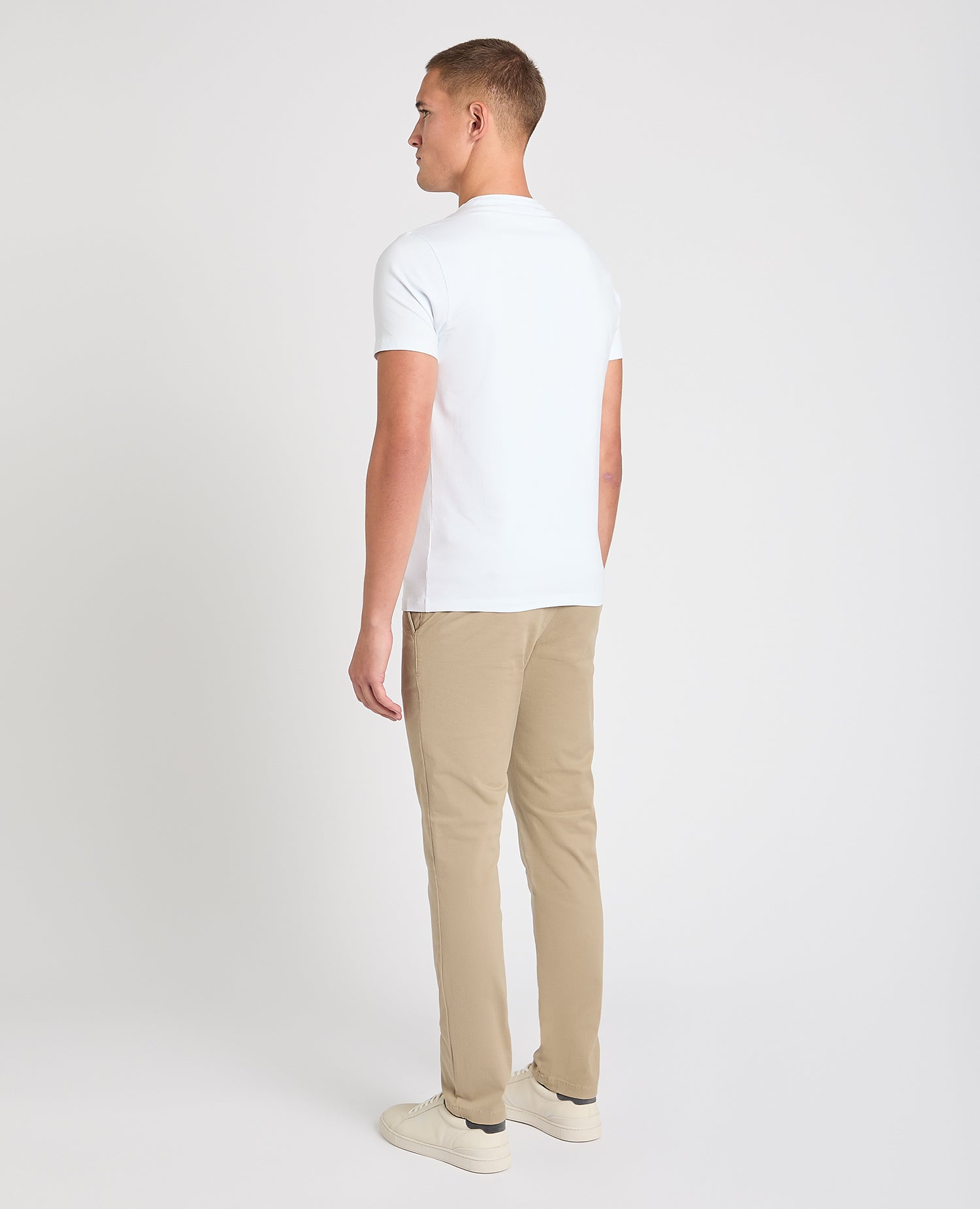 Model is 6’2” /188cm tall and wears a slim leg chino, size 34R. Our slim leg chinos are designed to create the perfect slim silhouette with narrower profile through the leg and at the hem.