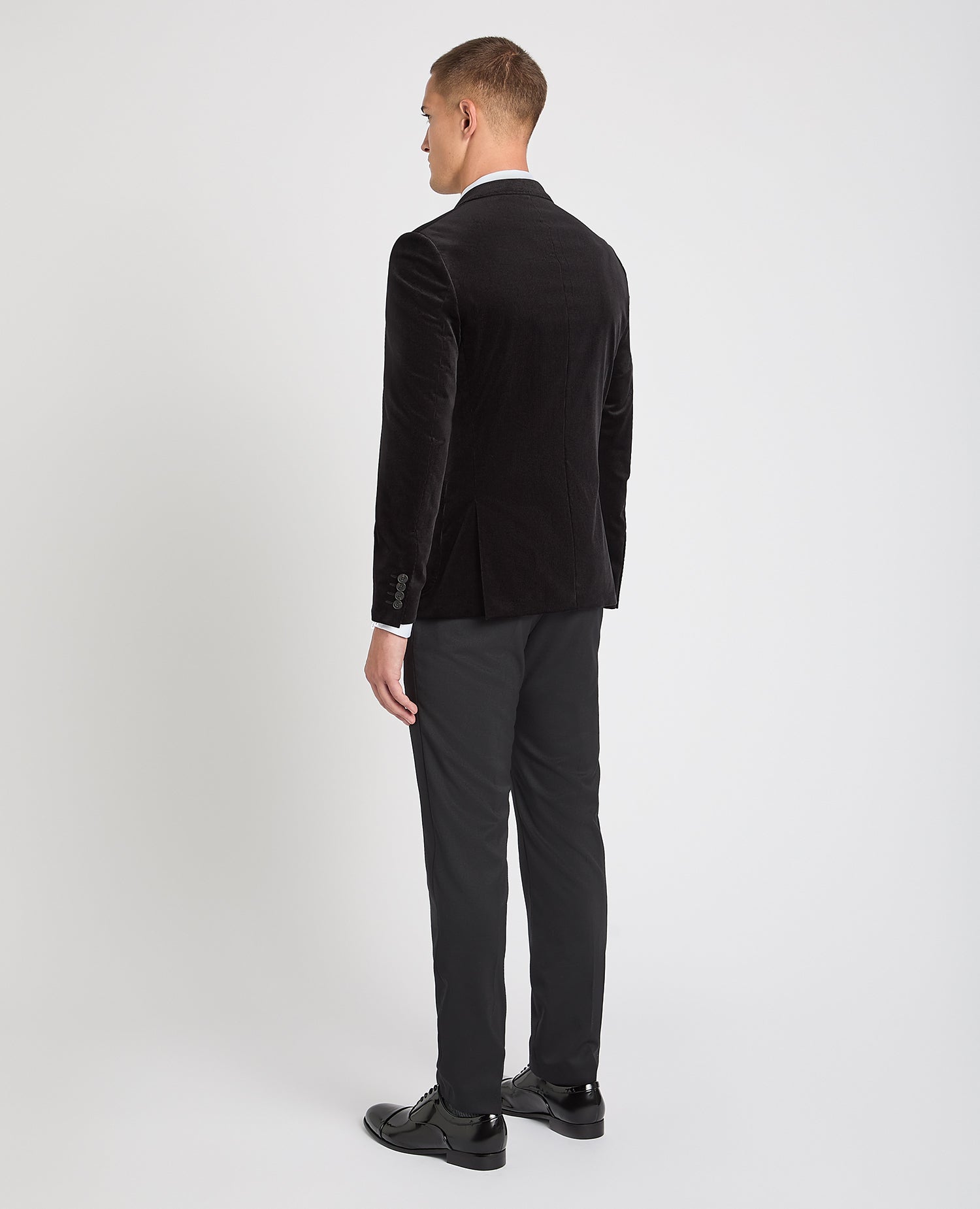 Black slim fit cotton stretch suit jacket with surface interest fabric romario