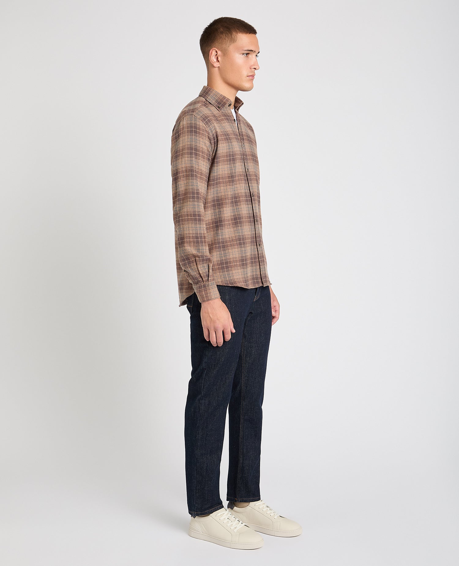 A classic you'll continue to reach for. Crafted from 100% cotton, this brown check shirt pairs a tapered fit with thoughtful details like a buttoned-down collar, keeping your look smart without trying too hard.