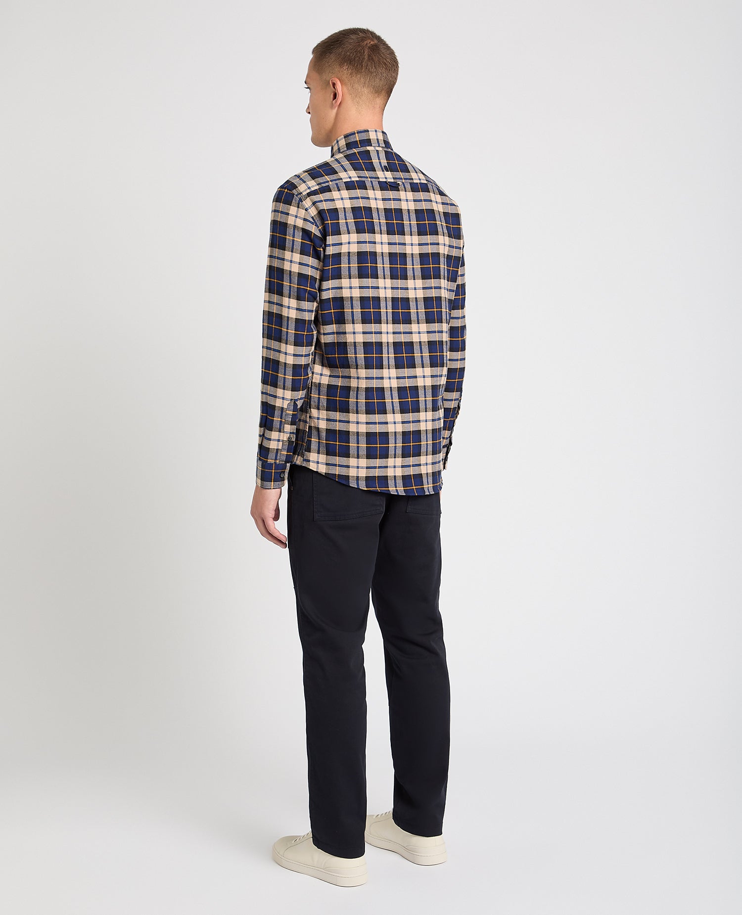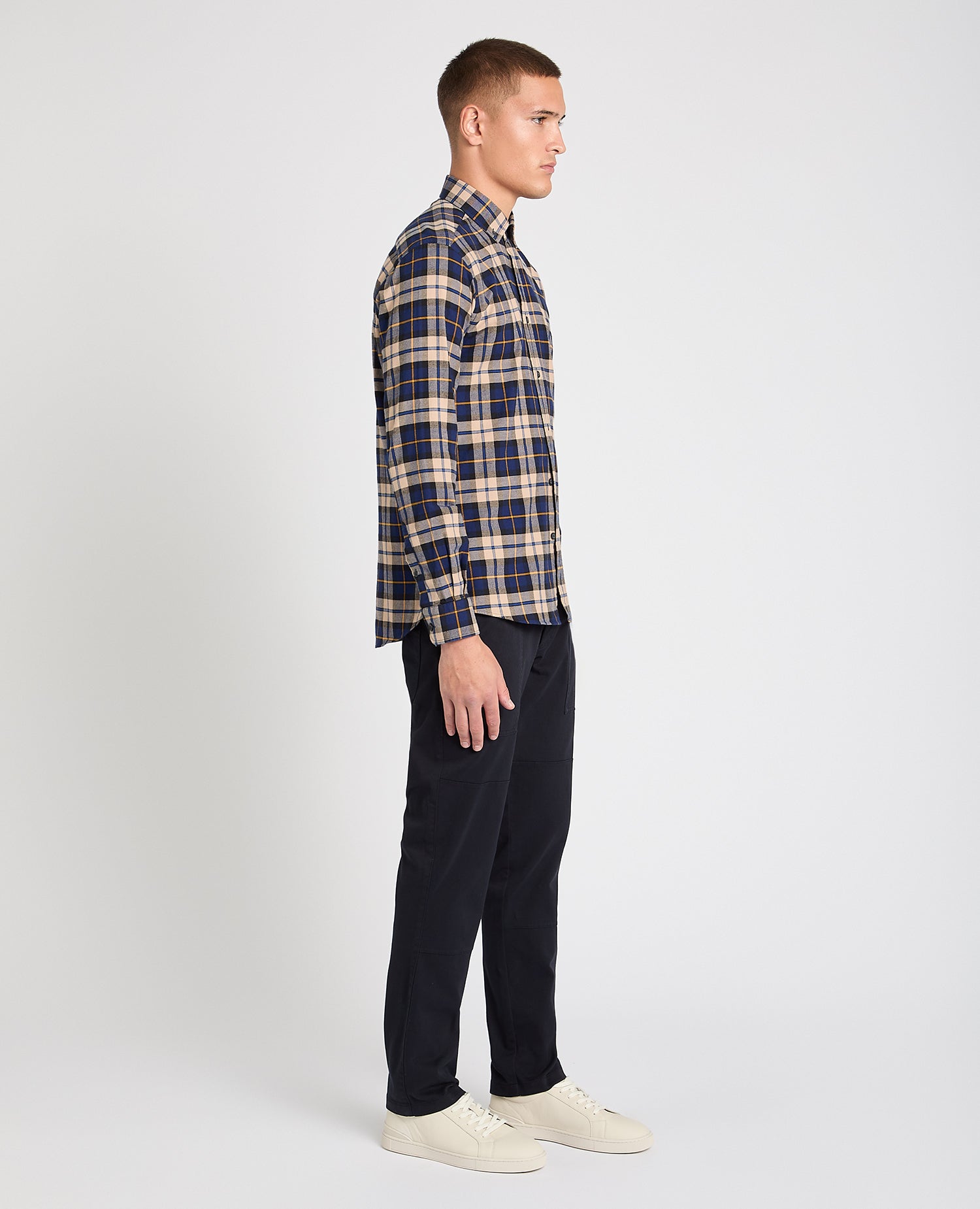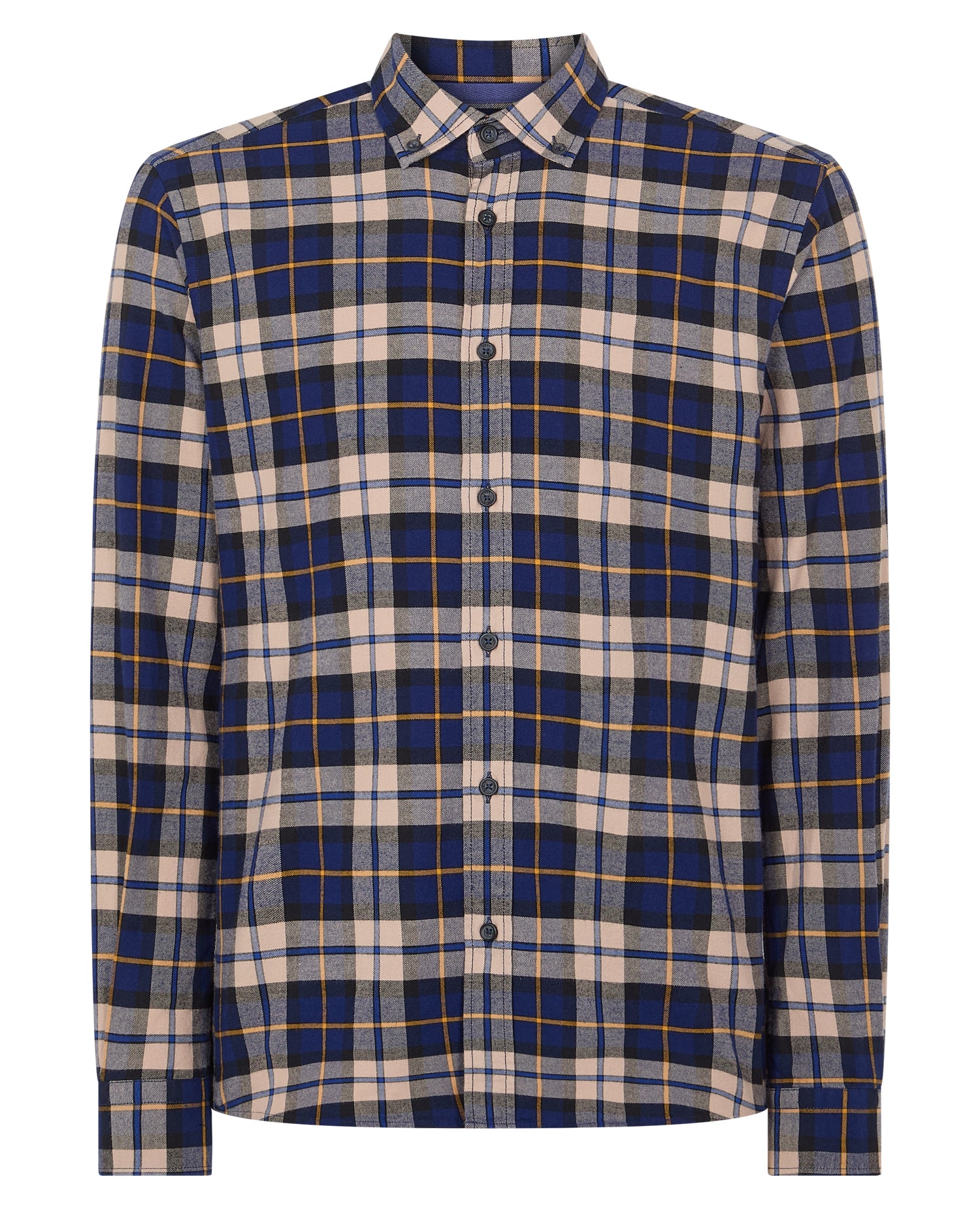 Blue tapered fit checked cotton shirt and classic pointed collar