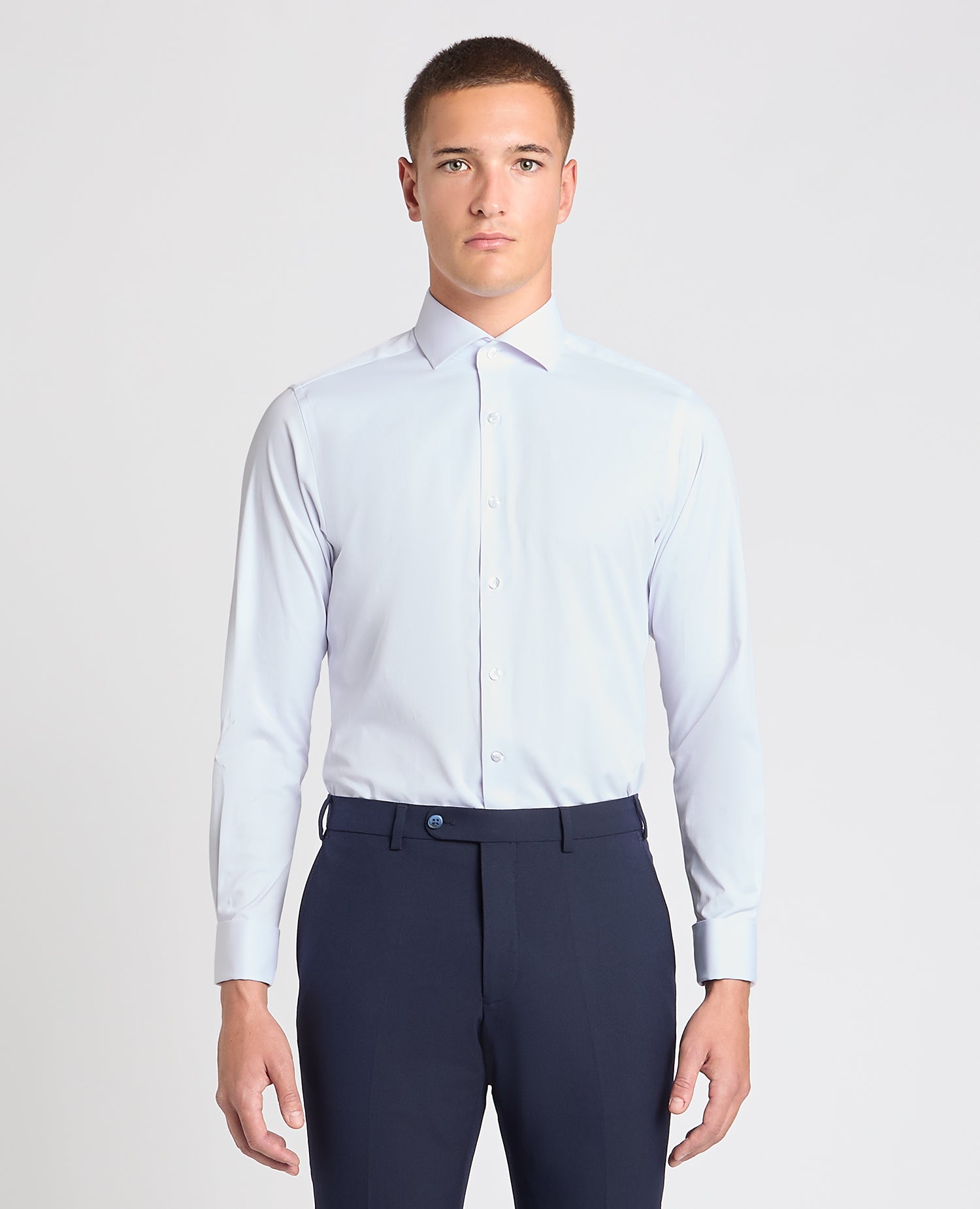 Designed for elevated occasions, this tapered fit shirt will keep your look refined with a clean French front and double cuff. Comfortable in a smooth cotton blend, it's an easy choice for any formal event.