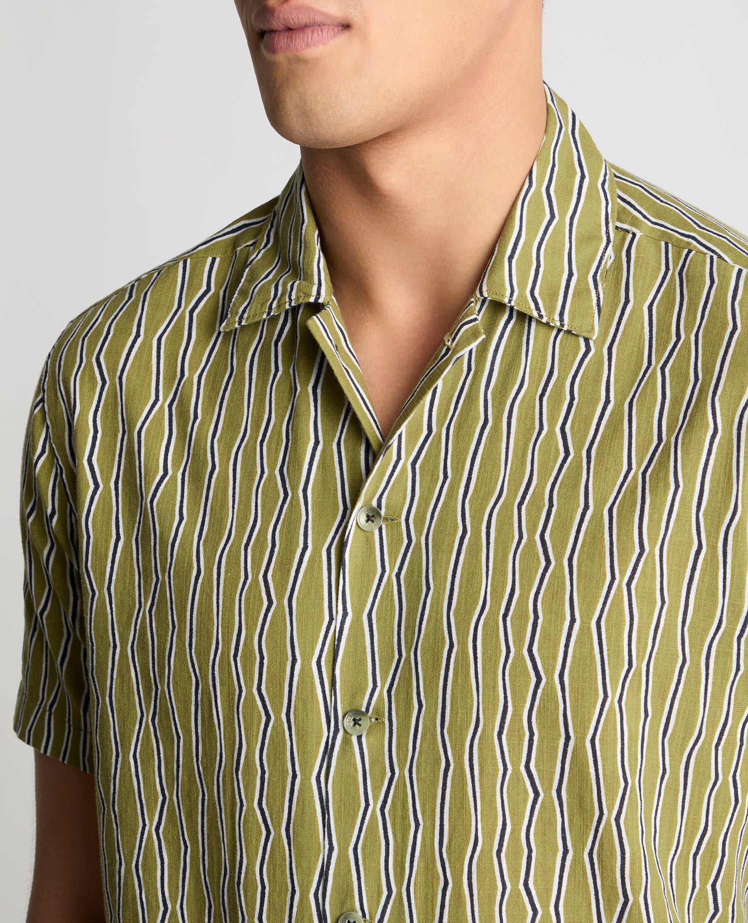 Print on. Outfit sorted. This zig-zag patterned shirt adds interest to any laid-back look. Throw it on with chinos, shorts or denim, and you re ready for lunch with mates, coffee runs, or wherever the day takes you.