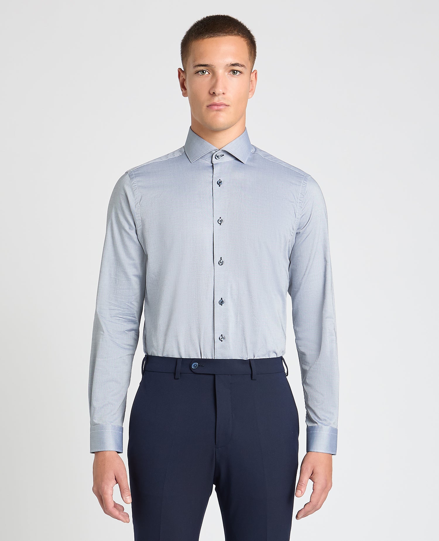 A refined tapered fit with the comfort of a pure cotton fabrication, this shirt moves easily from office hours to evening plans. Subtle contrast detailing at the collar strikes just the right balance between classic and considered. It's the small touches that set this shirt apart.