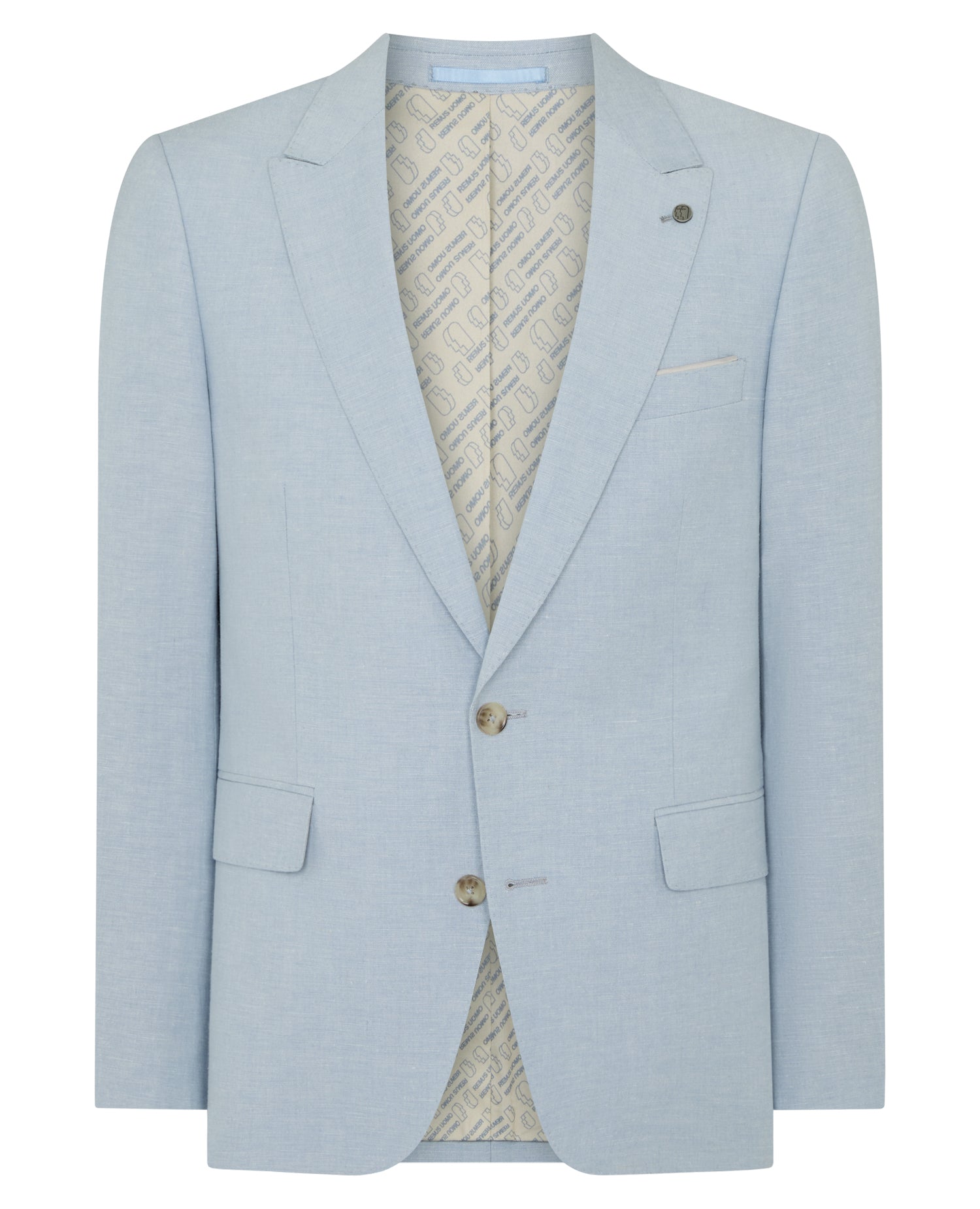 Dark blue tapered fit linen-blend suit jacket. Wide peak lapel, button two, and straight flap side pockets. Also available in matching Bow Tie - 1_W6270