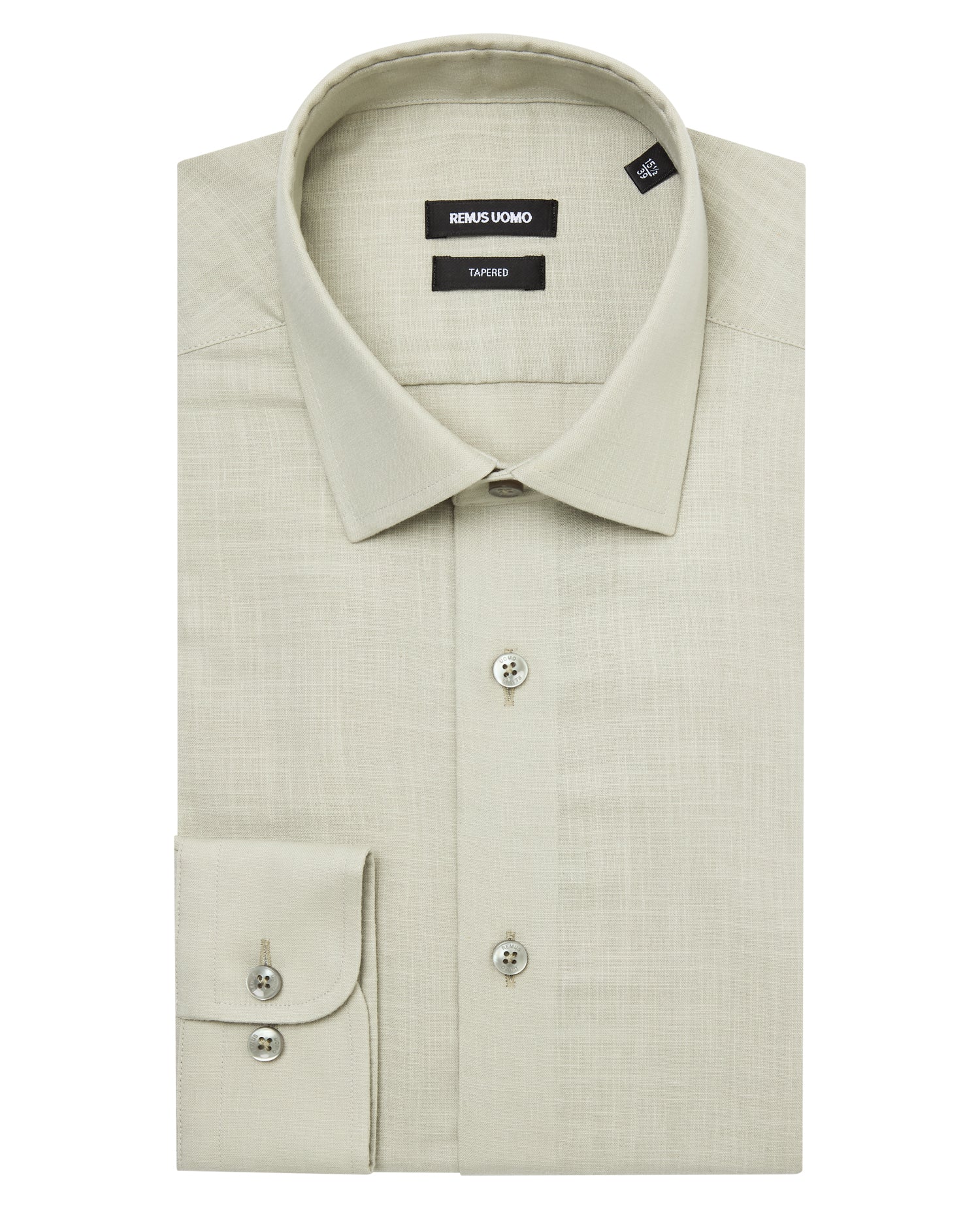 Model is 6’2”/188cm tall and wears a tapered fit shirt with a 15.5 inch collar. Model has a 40” chest and 32” waist.