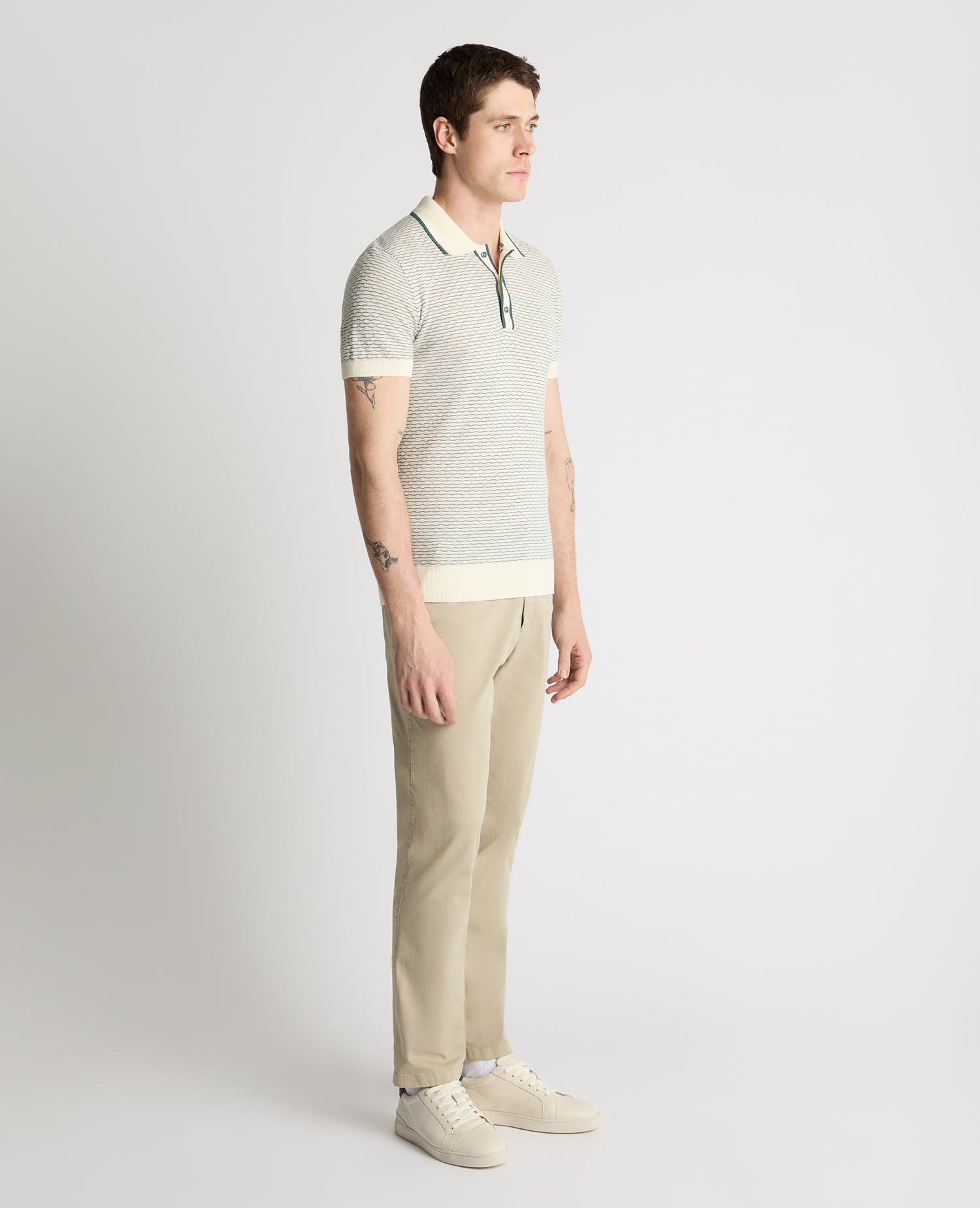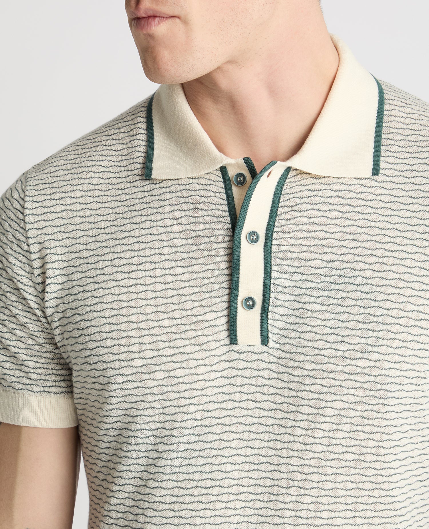 This wave stripe knit brings a bit of movement and personality to your look, while the clean polo shape keeps it wearable. Crafted from 100% cotton, it s comfortable enough for long lunches by the coast or heading for dinner once the sun starts to dip. The tipped collar and placket add a subtle finishing touch, giving it that I ve thought about this feel without much real effort.